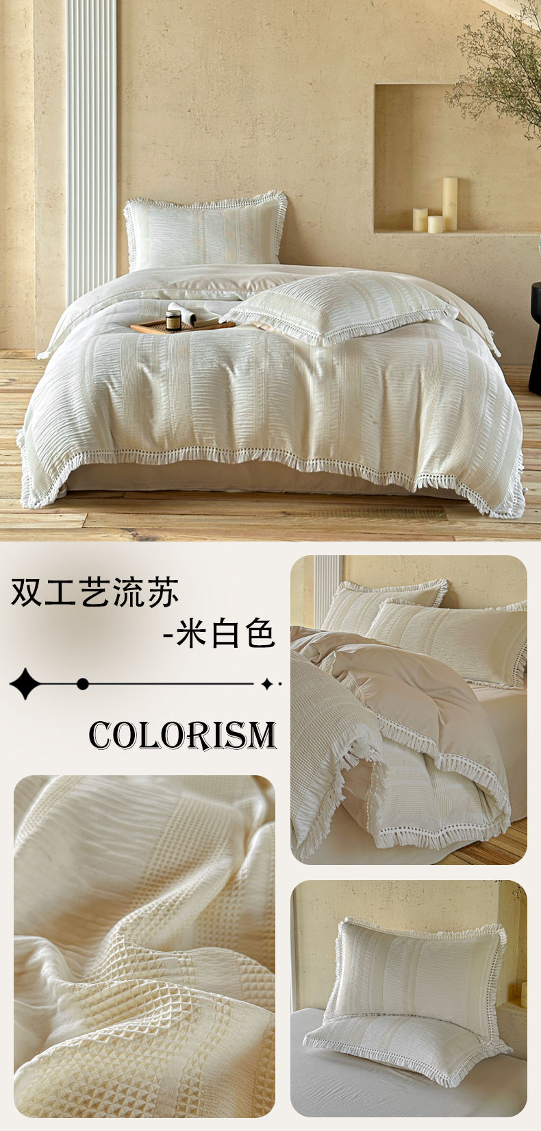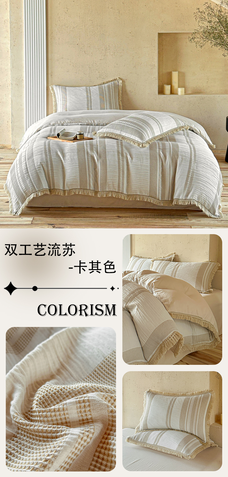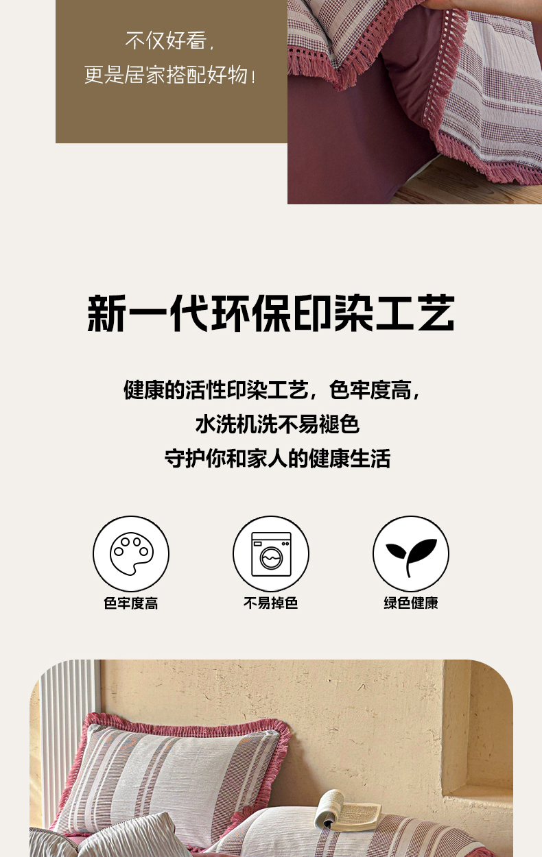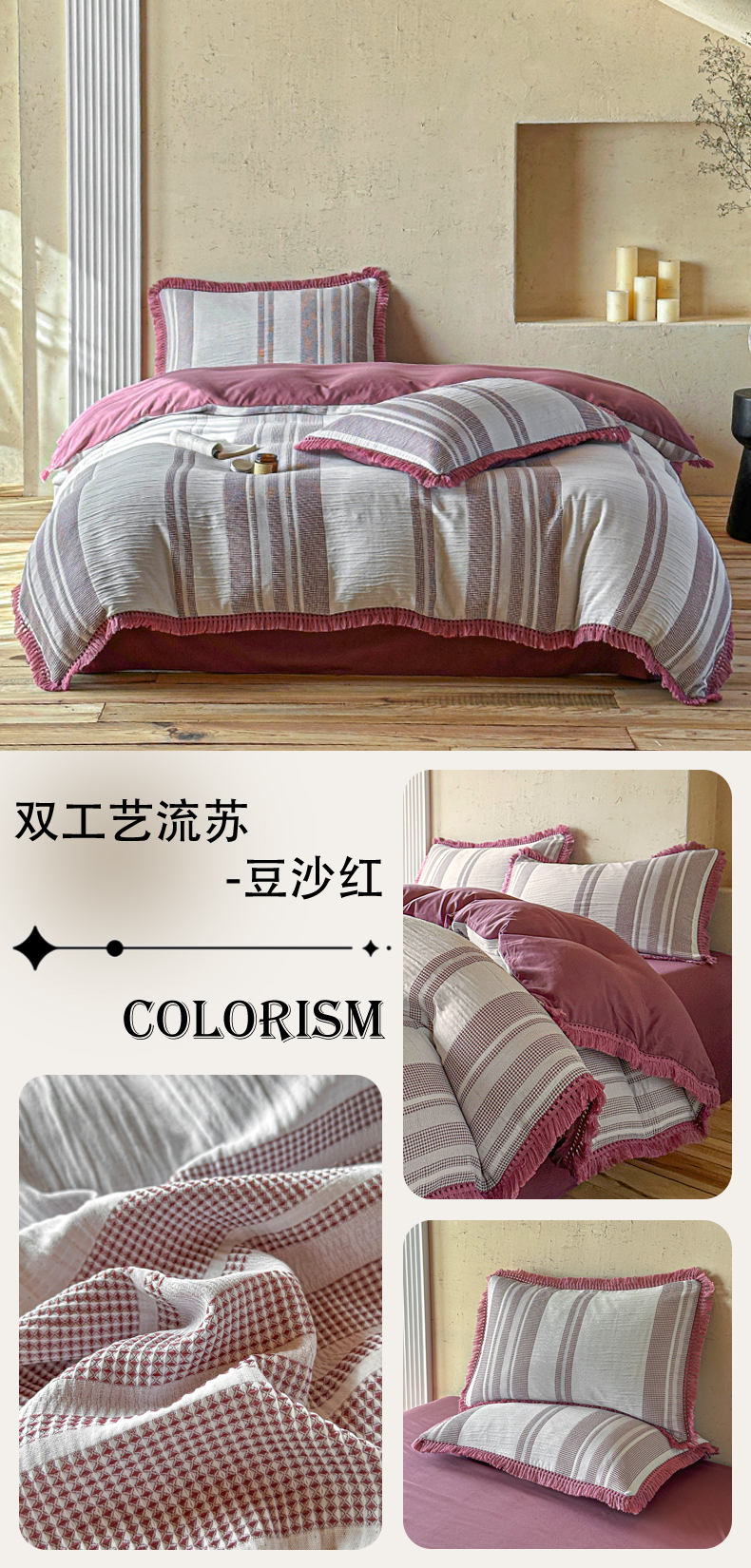 当前位置: 91家纺网 > 商品网购 > 床品套件 > 四件套 > 色织四件套 > 缘生活 2026新款色织提花双层纱华夫格流苏四件套 双工艺流苏-豆沙红