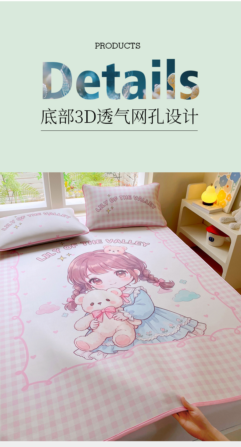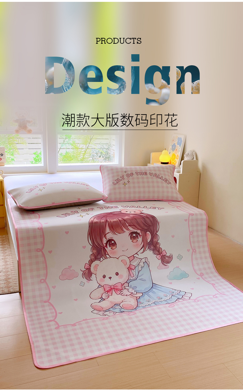 商品名称:莱米家纺 2026新款大版小冰皮床笠床席 甜美女孩床席