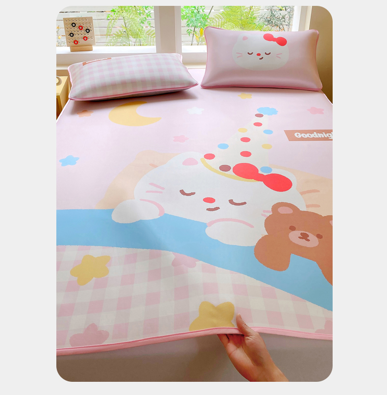 莱米家纺 2026新款大版小冰皮床笠床席 甜心猫咪床笠