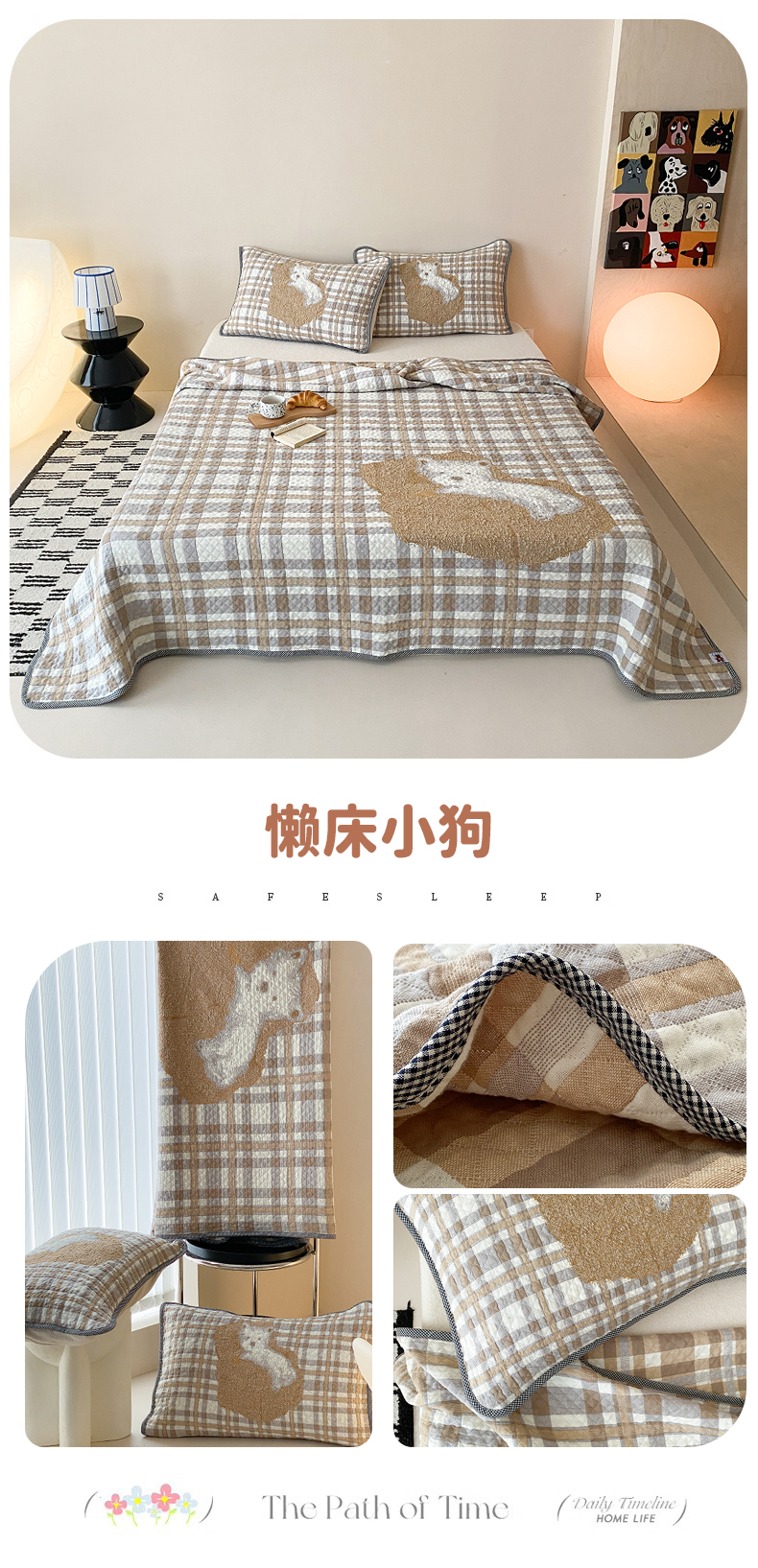 商品名称:麻依 2026新款软萌纱布床盖三件套系列 毛绒小狗