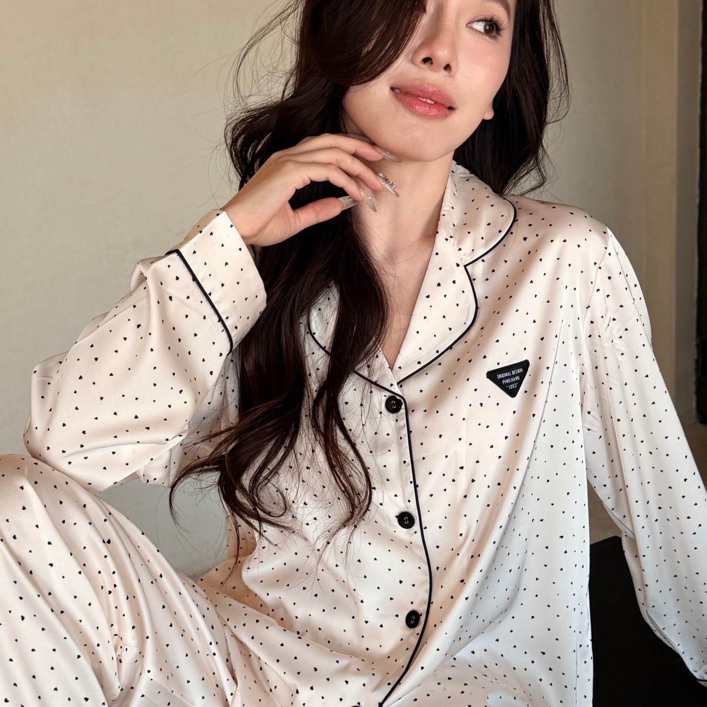 当前位置: 91家纺网 > 商品网购 > 居家日用 > 睡衣/家居服套装 > 妍景家居生活馆 2026春夏新款冰雪丝-点点三角形家居服 冰雪丝-点点三件套-白色