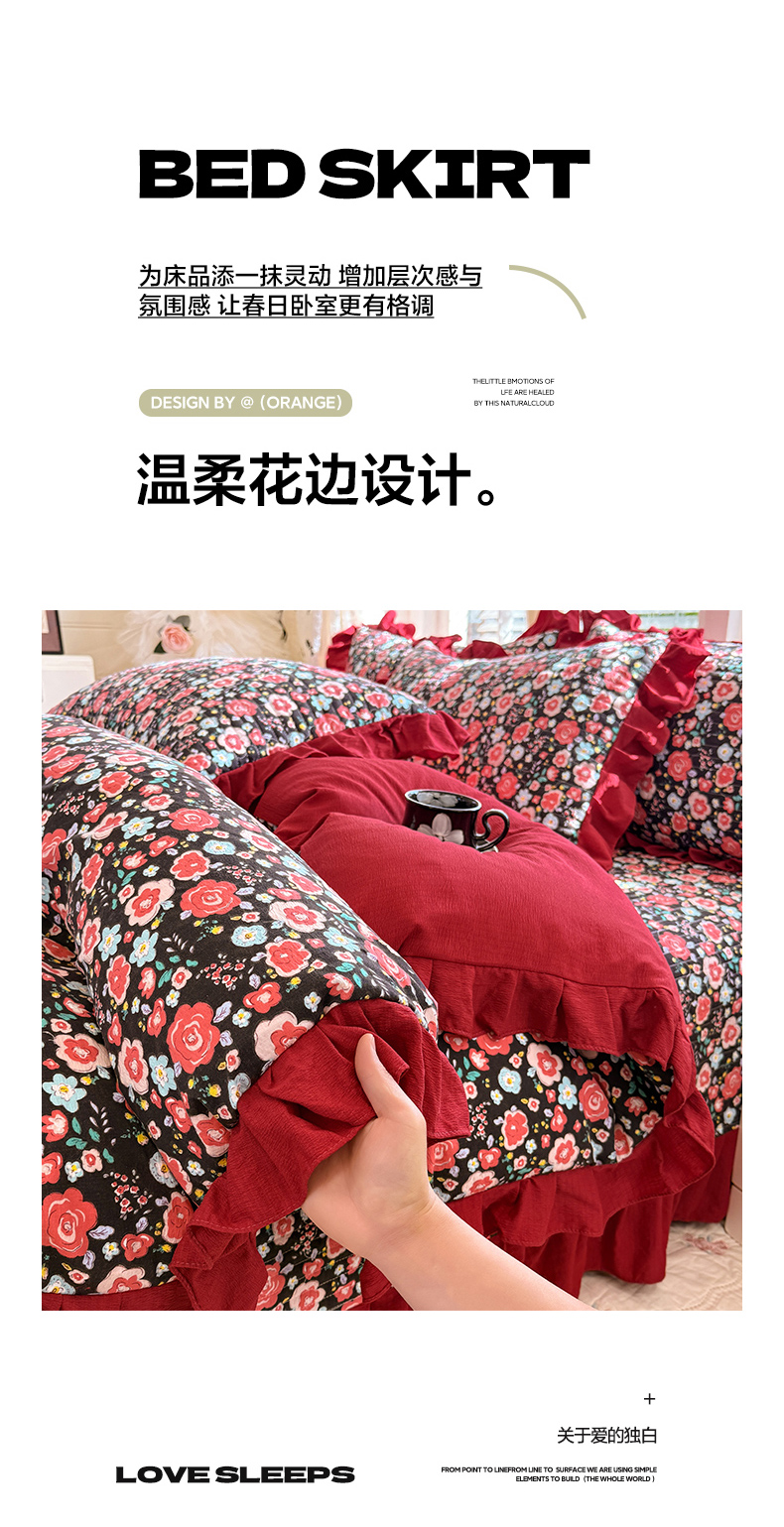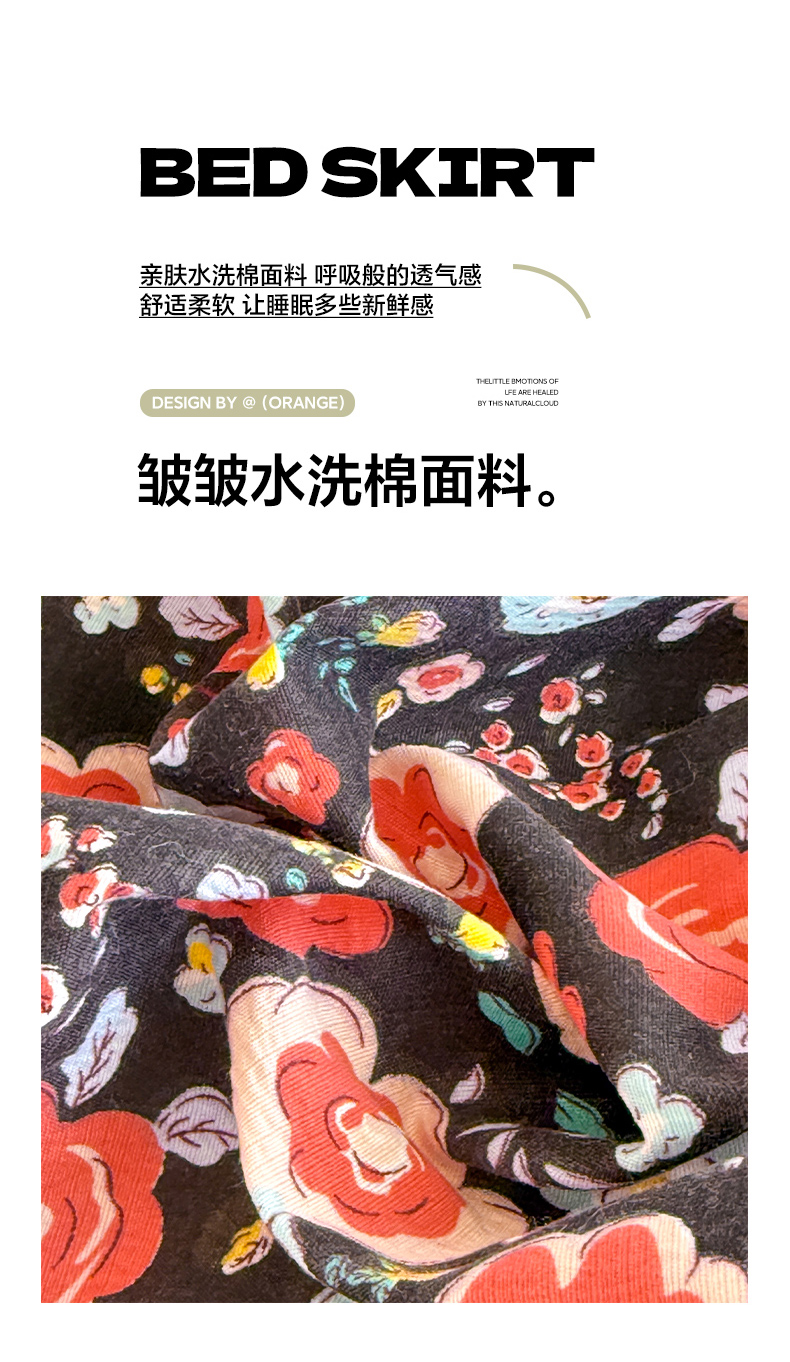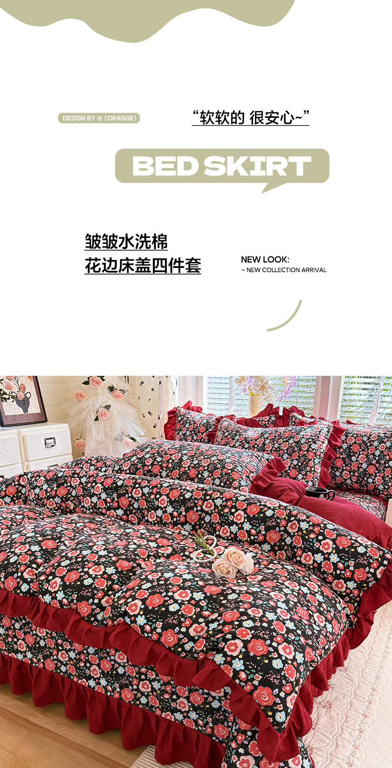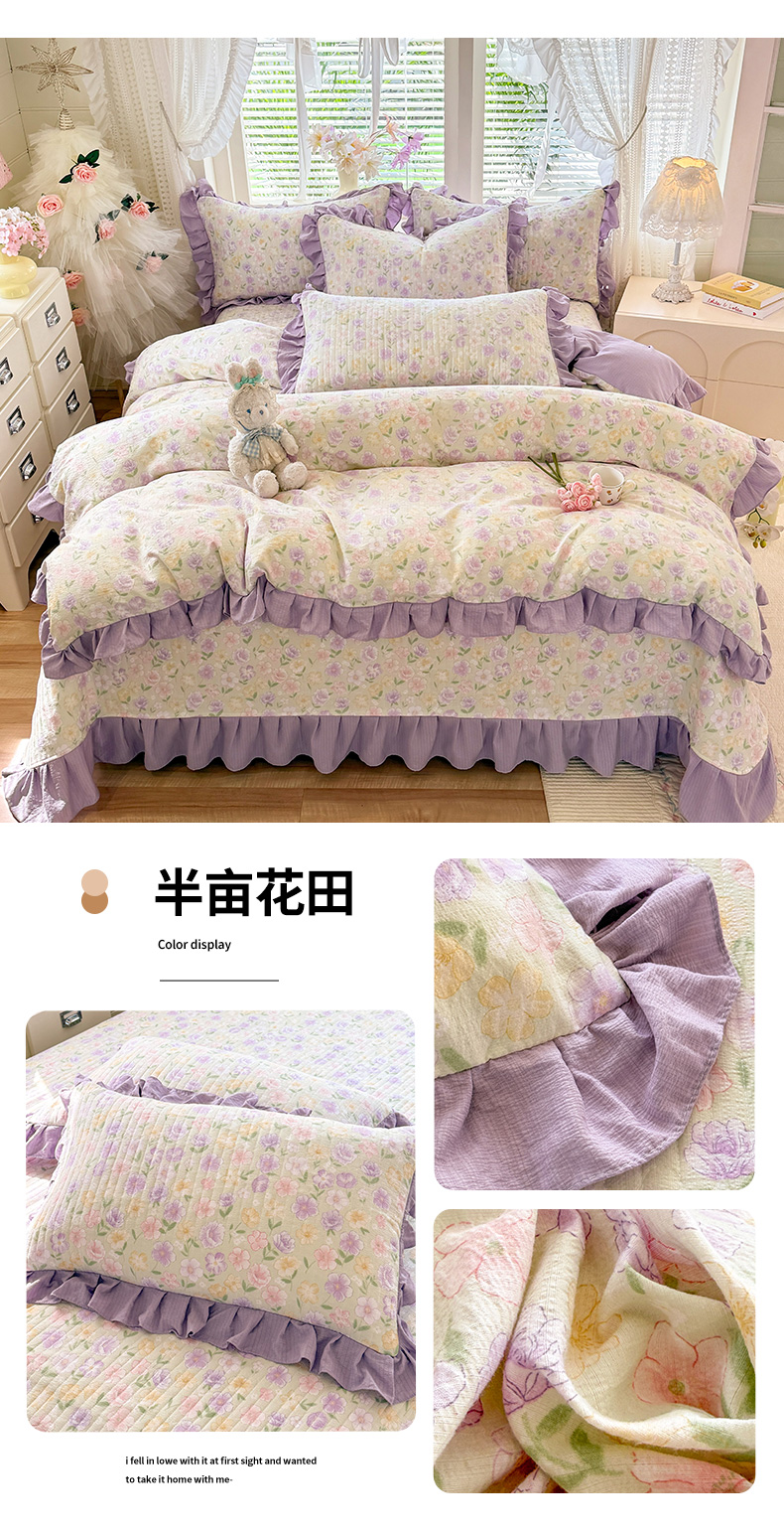 当前位置: 91家纺网 > 商品网购 > 床品套件 > 四件套 > 水洗棉四件套 > 唐人居 2026春夏新款皱皱水洗棉花边床盖四件套 初见