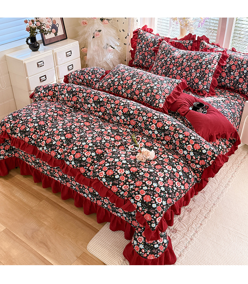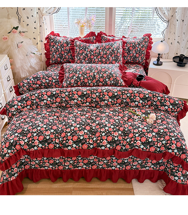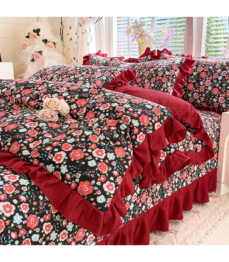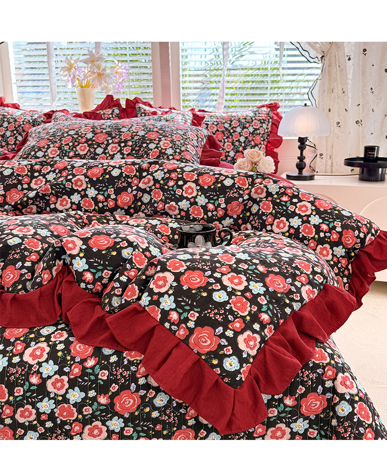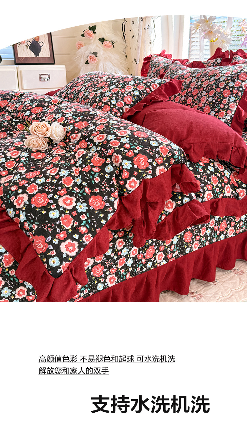 当前位置: 91家纺网 > 商品网购 > 床品套件 > 四件套 > 水洗棉四件套 > 唐人居 2026春夏新款皱皱水洗棉花边床盖四件套 初见