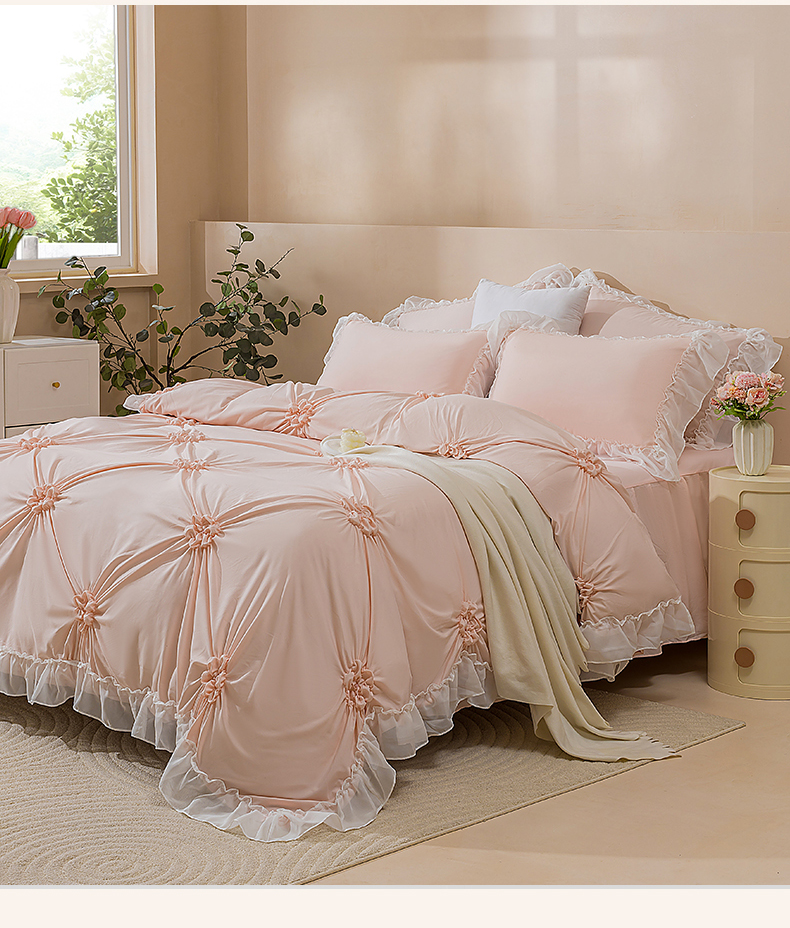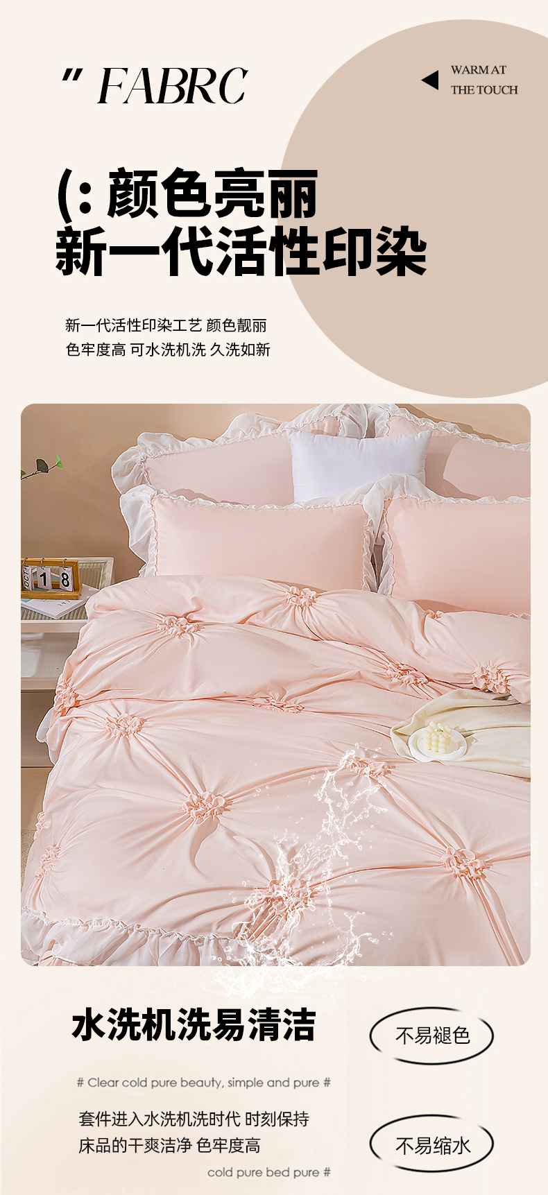 当前位置: 91家纺网 > 商品网购 > 床品套件 > 四件套 > 其它四件套 > (总)恩和家纺 2026新款弹力揪花白纱飞边床单款床裙款三四件套