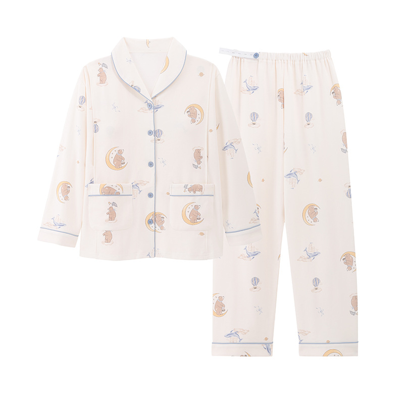(总)洛兰沙家居馆 26春季新款睡衣韩国ins家居服棕色大波浪纹长袖长裤女士居家套装,花色1