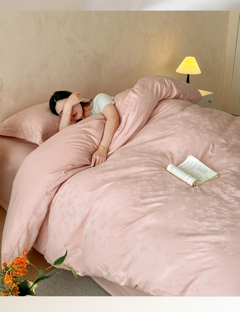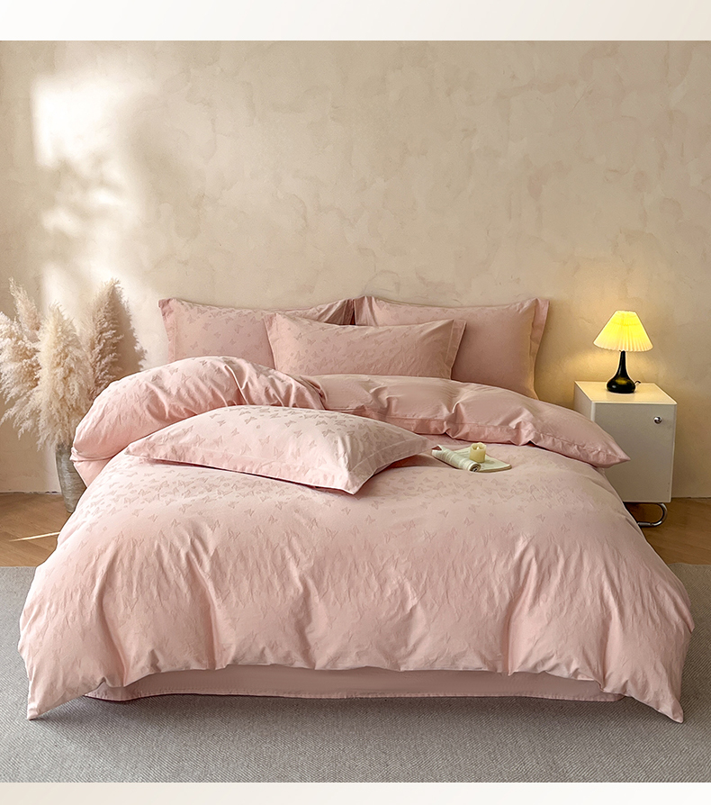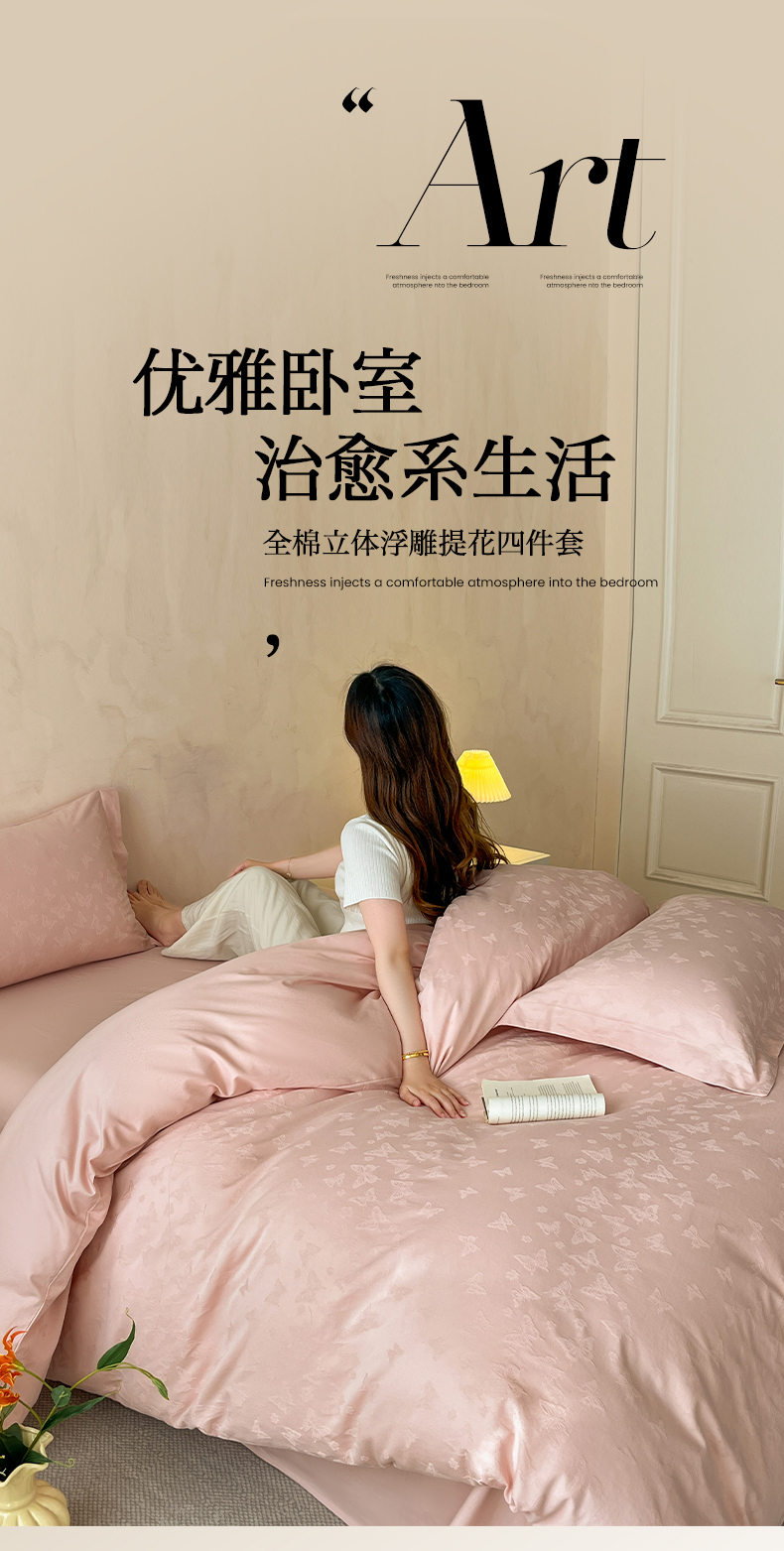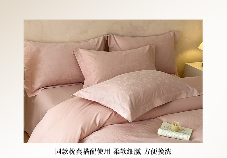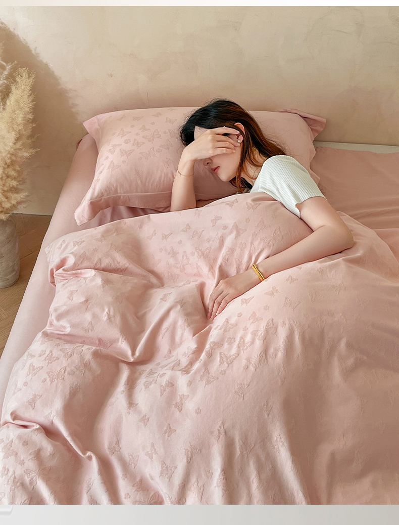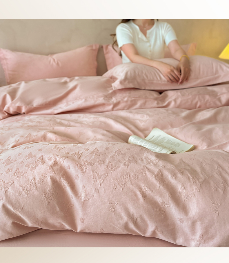 当前位置: 91家纺网 > 商品网购 > 床品套件 > 四件套 > 全棉普通四件套 > 火麒麟家纺 2026新款A类全棉纯棉水洗立体浮雕提花纯棉四件套 蝶愔之舞(唯美粉)