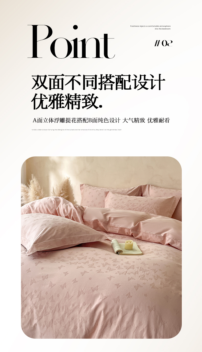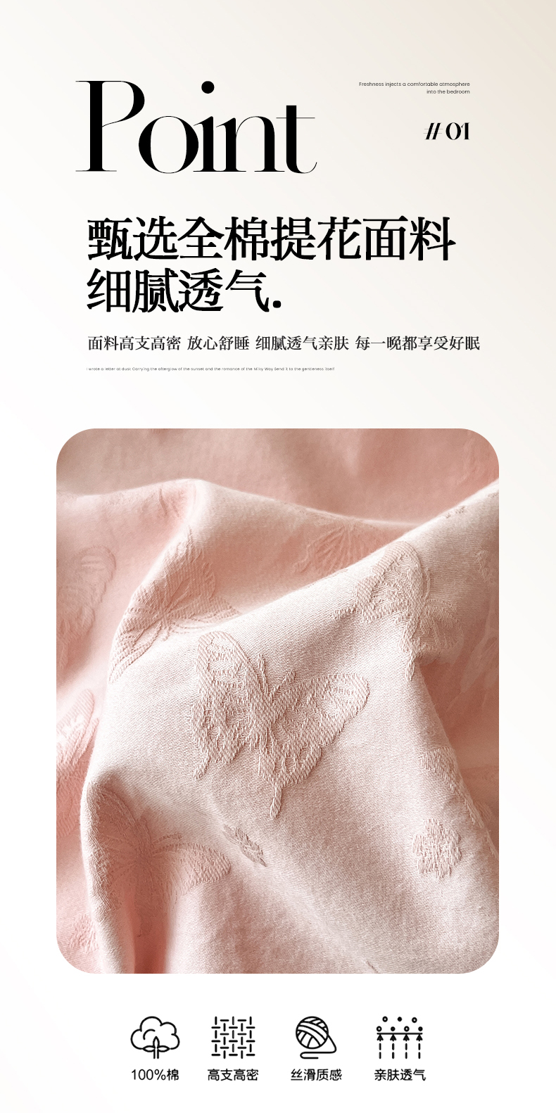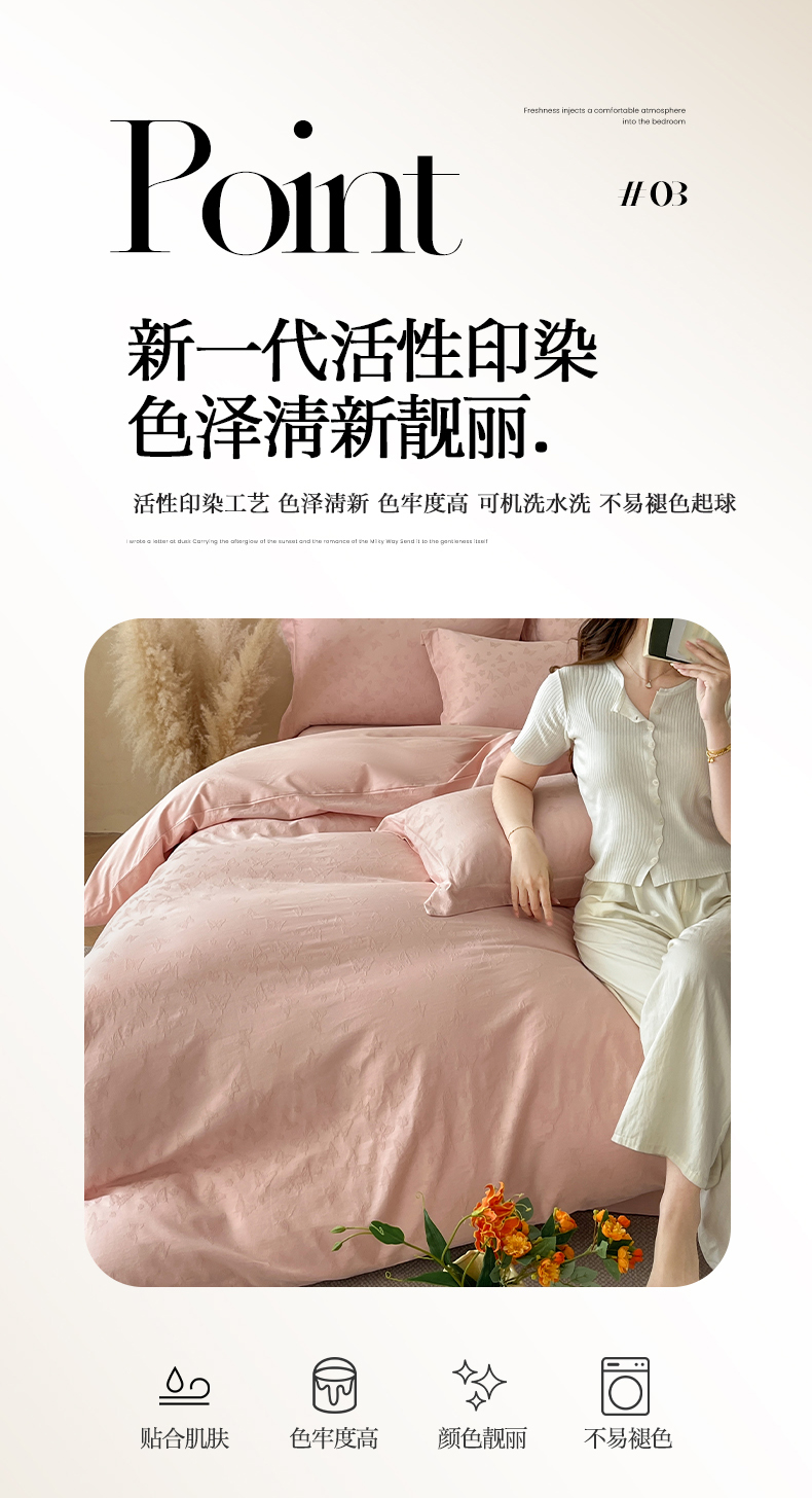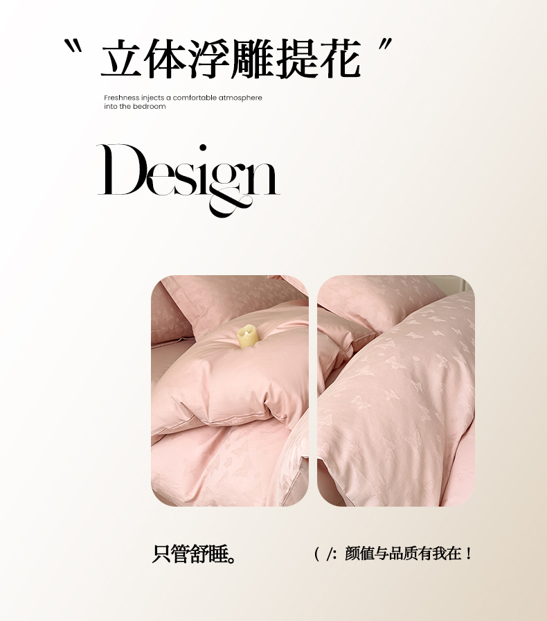 当前位置: 91家纺网 > 商品网购 > 床品套件 > 四件套 > 全棉普通四件套 > 火麒麟家纺 2026新款A类全棉纯棉水洗立体浮雕提花纯棉四件套 蝶愔之舞(唯美粉)