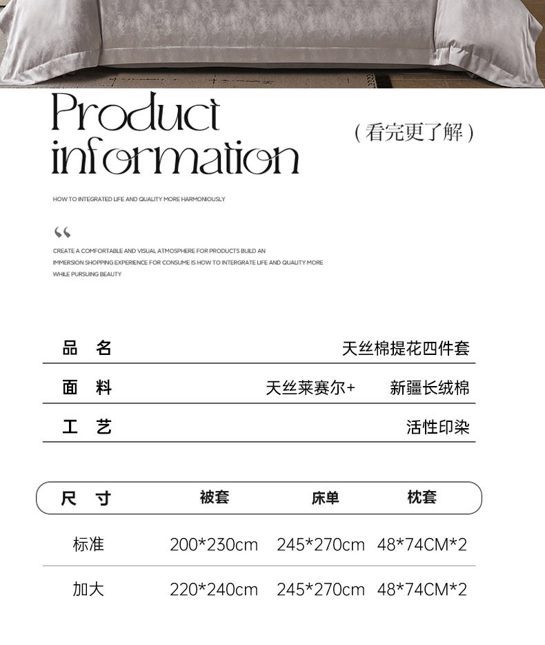 商品名称:蒂爵 2026新款天丝棉提花四件套 高级灰
