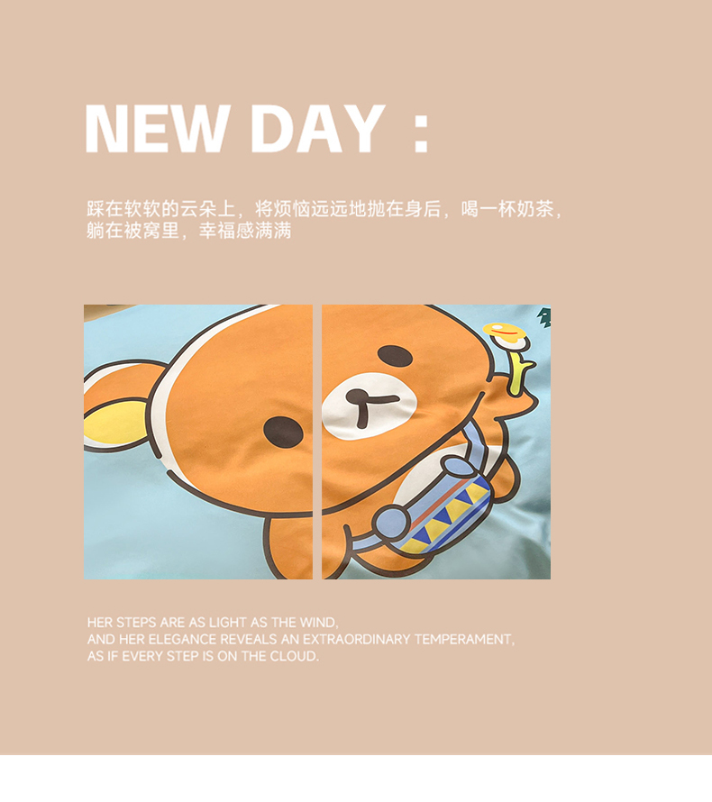 当前位置: 91家纺网 > 商品网购 > 床品套件 > 四件套 > 磨毛活性四件套 > KT猫直营店 2026新款卡通斜纹磨毛大版四件套 懒懒熊