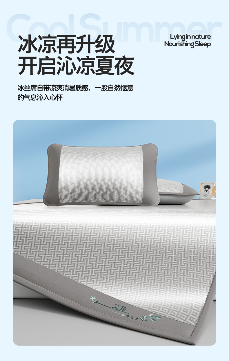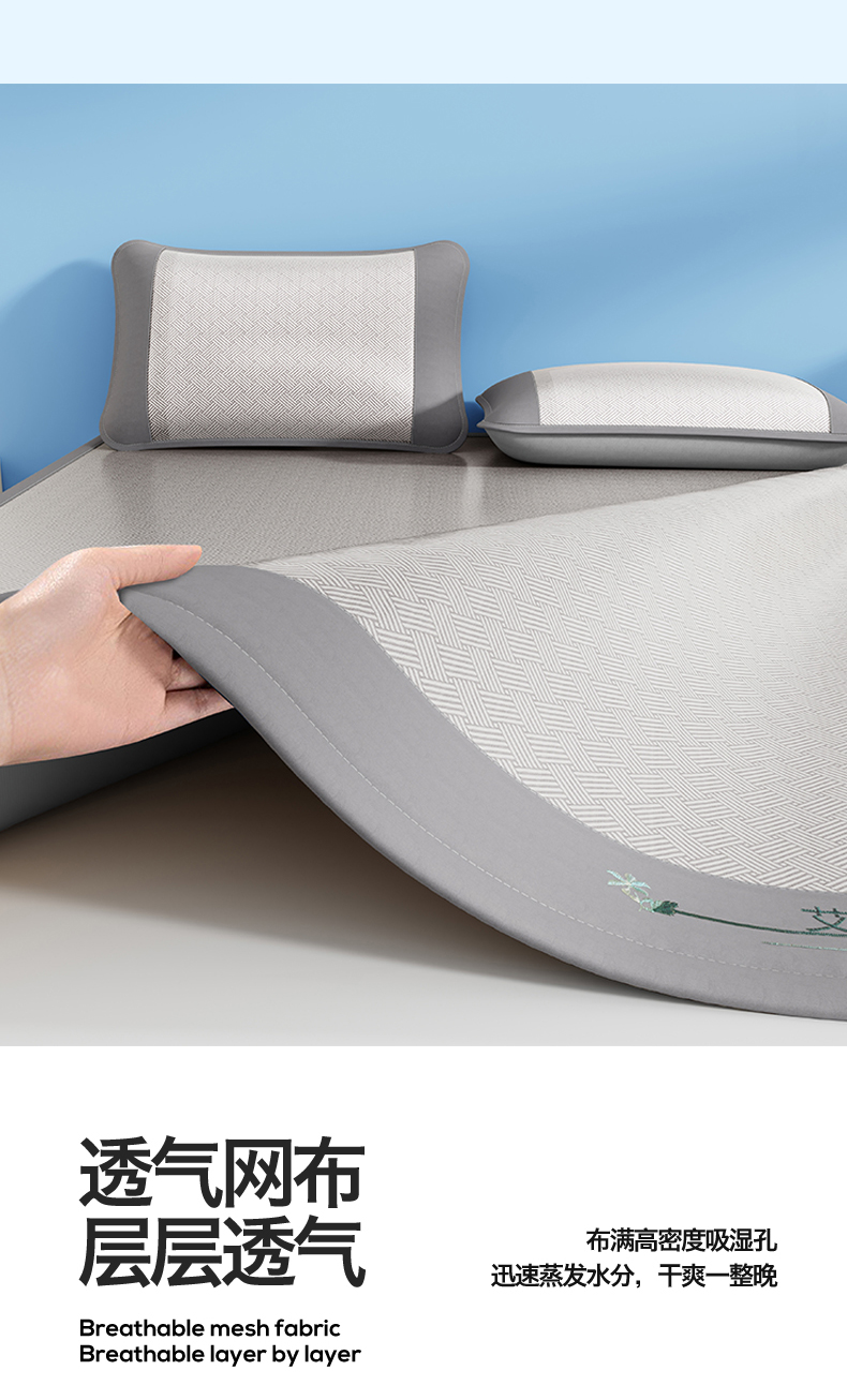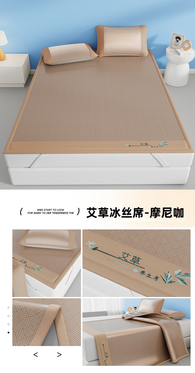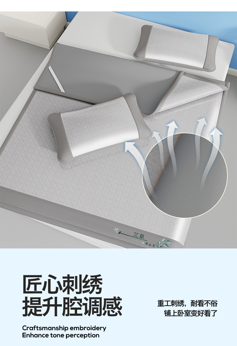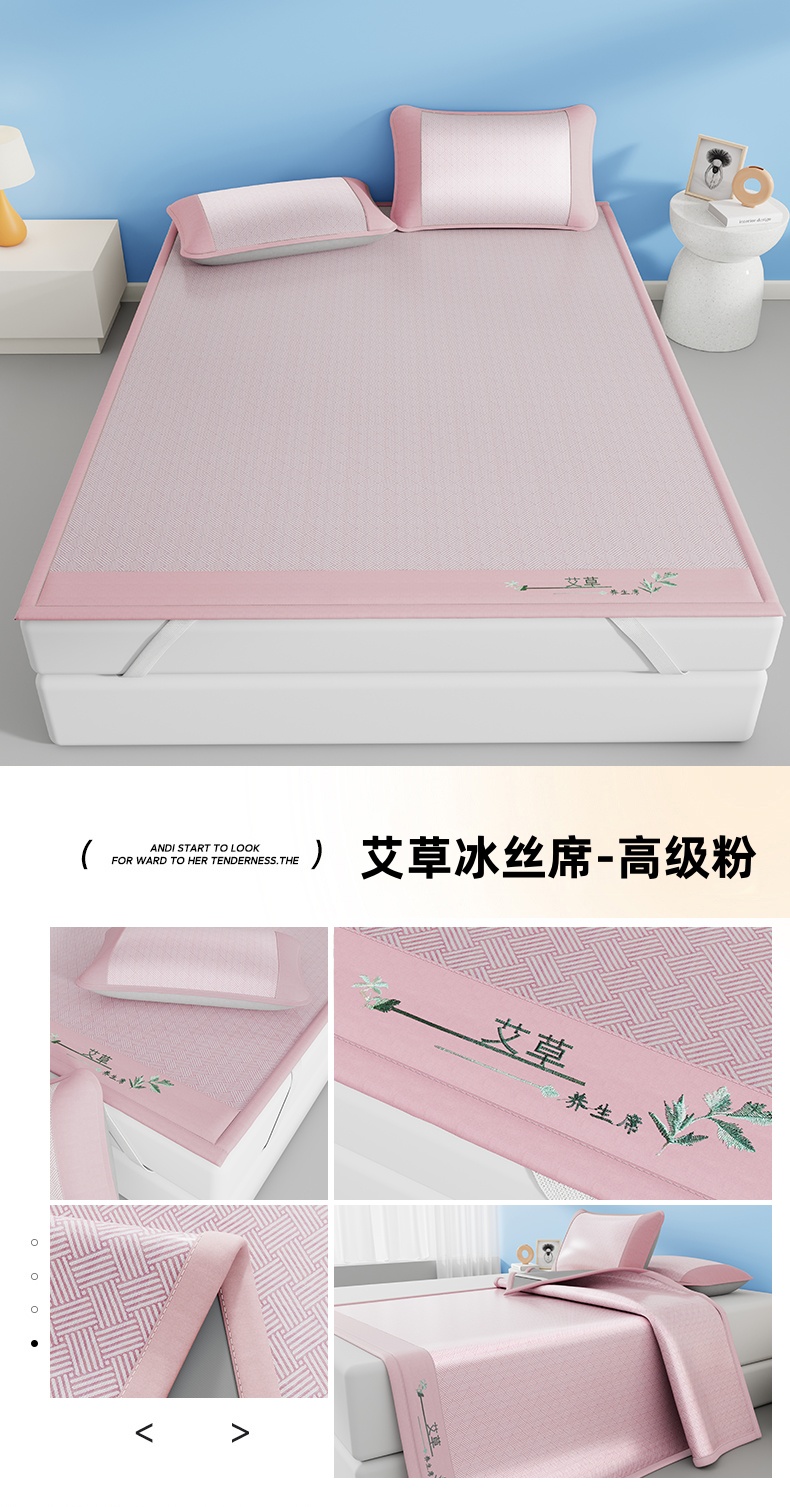 (总)好艺佳毛毯 2026新款艾草凉席冰丝席绣花高密碳光软席PE饼干花三件套学生宿舍可机洗水洗,艾草冰丝席-绅士灰,艾草冰丝席-高级粉,艾草冰丝席-宾利蓝,艾草冰丝席-摩尼咖,艾草冰丝席-薄荷绿