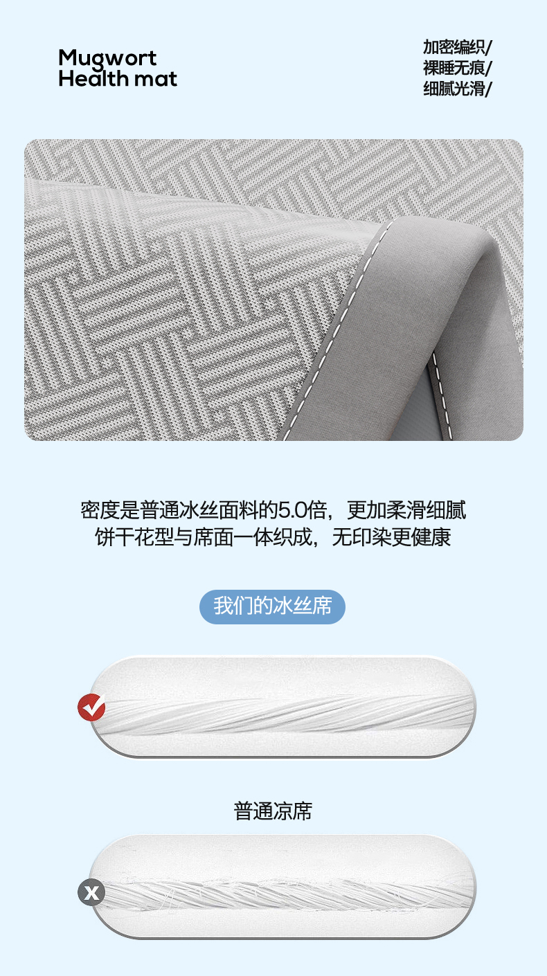 商品名称:(总)好艺佳毛毯 2026新款艾草凉席冰丝席绣花高密碳光软席PE饼干花三件套学生宿舍可机洗水洗