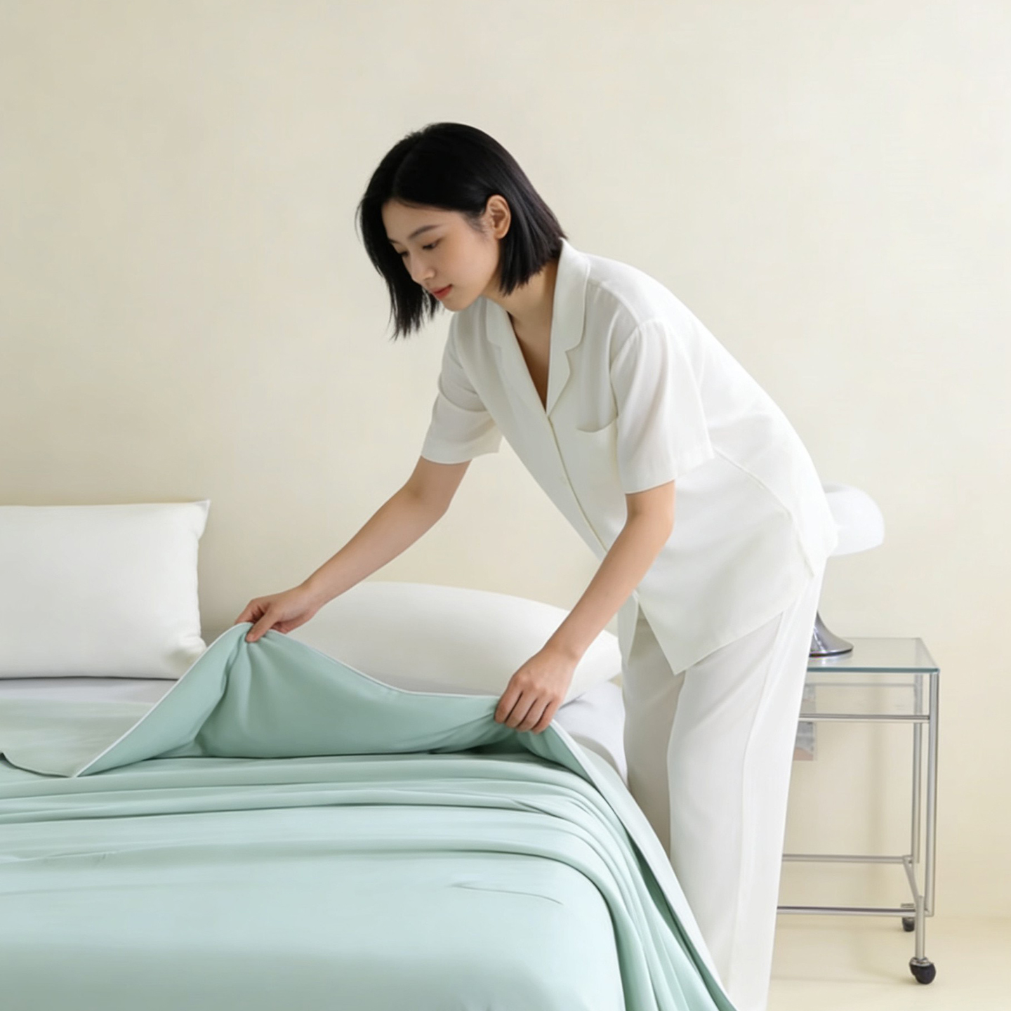 (总)LADYCOCO可可家居 2026新款PE冰锦丝语床笠枕套,琥珀绿,清凉粉,微风蓝,夏夜灰