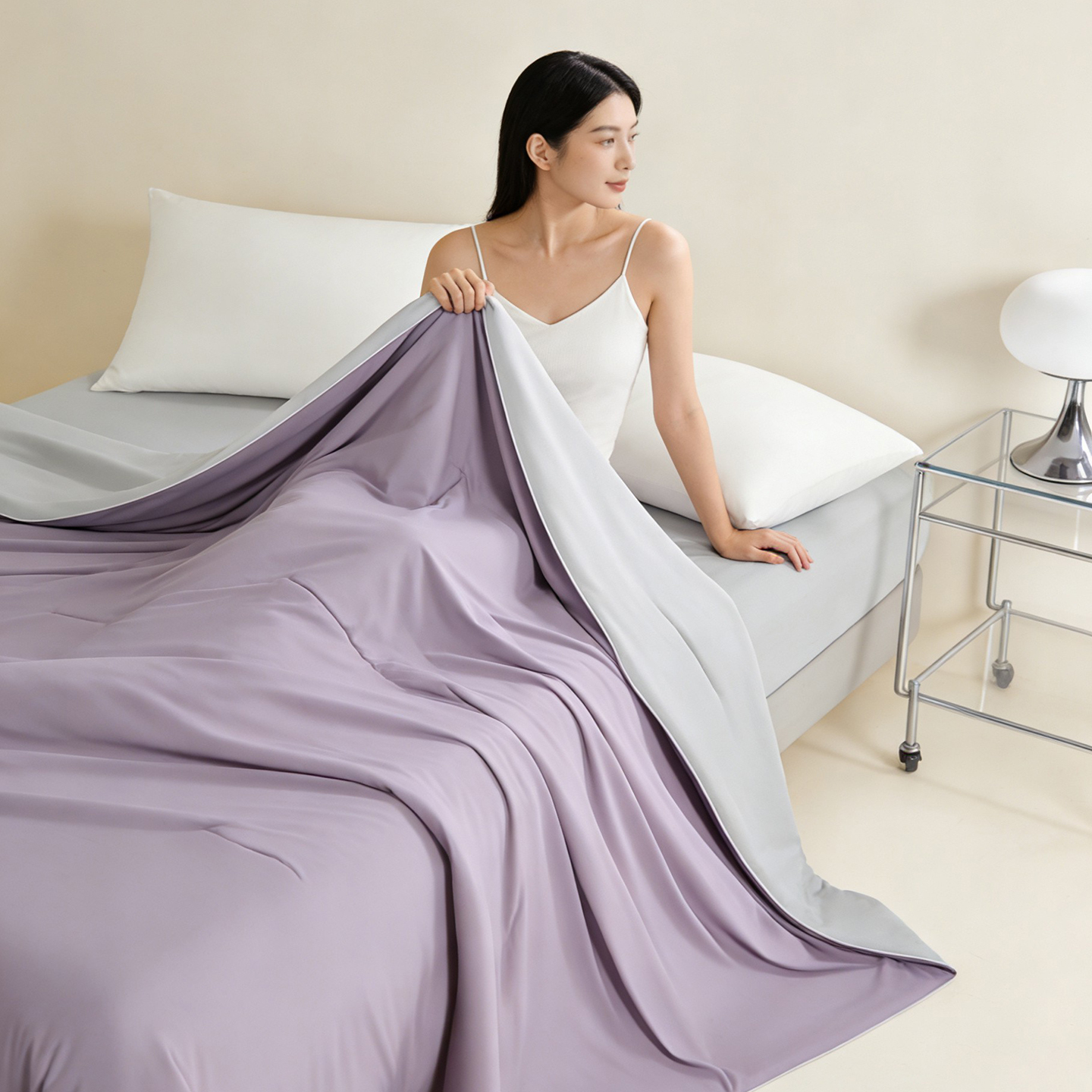(总)LADYCOCO可可家居 2026新款PE冰锦丝语夏凉被,琥珀绿,清凉粉,微风蓝,夏夜灰