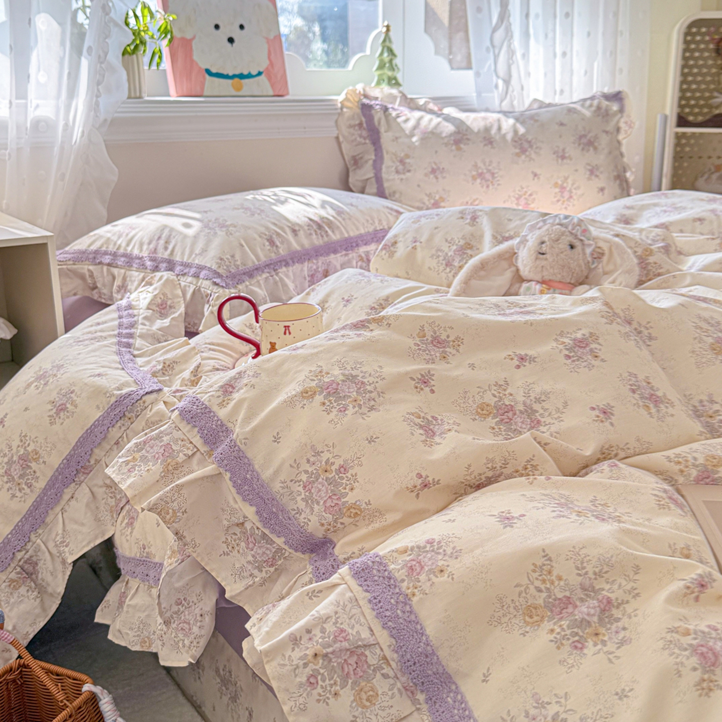 (总) 眠屿 2023春夏新款全棉蕾丝对角花边四件套,芭蕾世界,草莓小兔,草莓之恋,丁香兔,粉韵,花颂,花仙兔,花野兔,桔园,苏阳,田园奇遇,遇见浪漫,知南