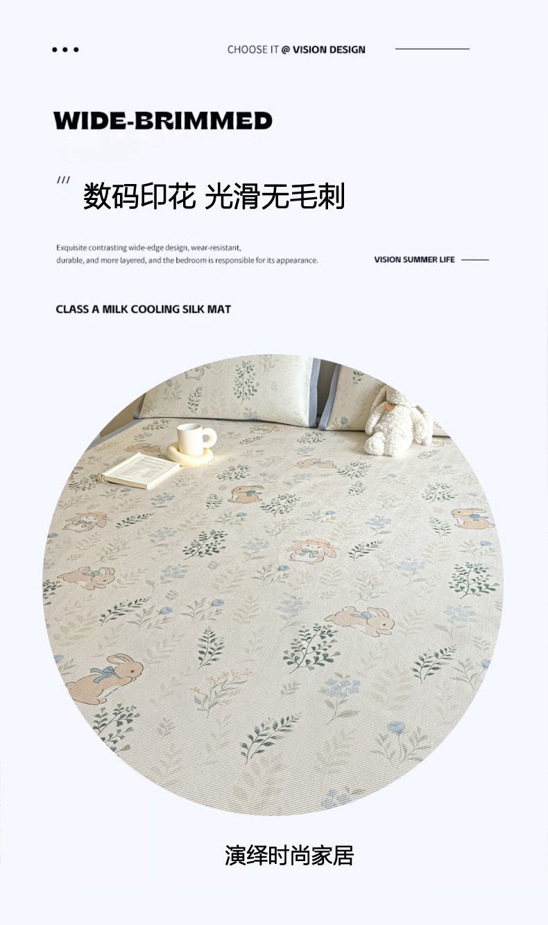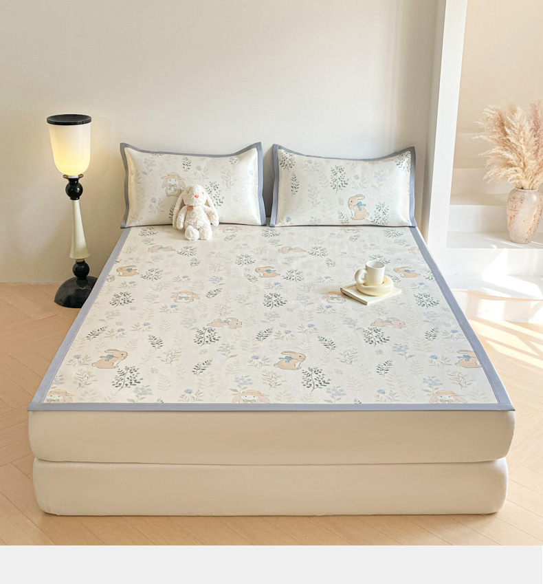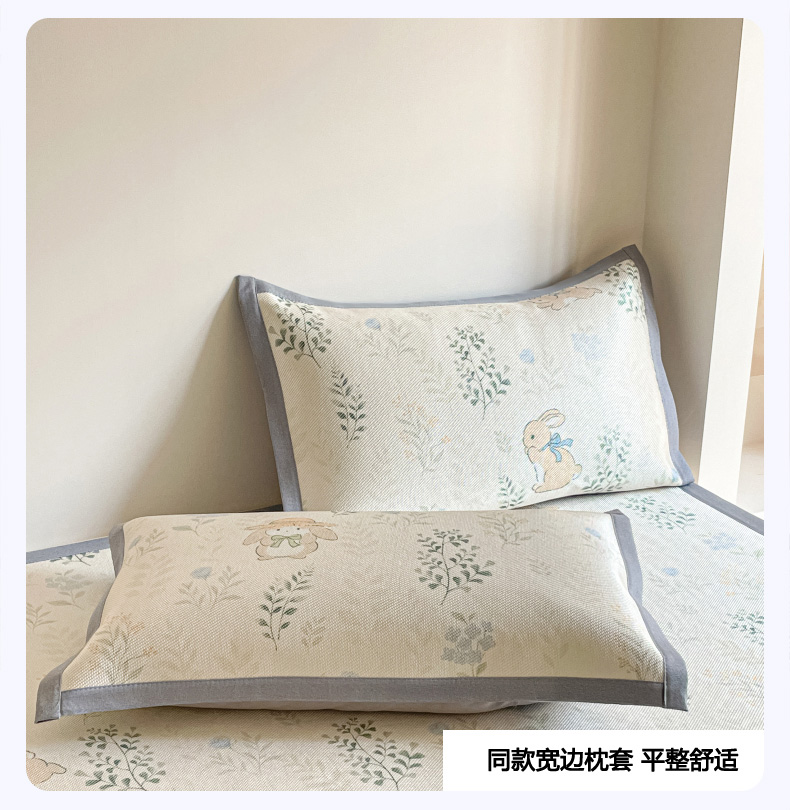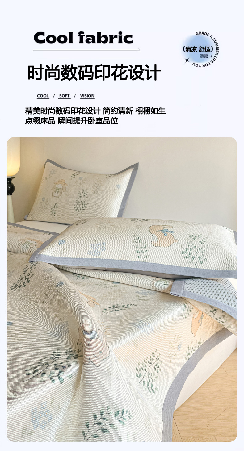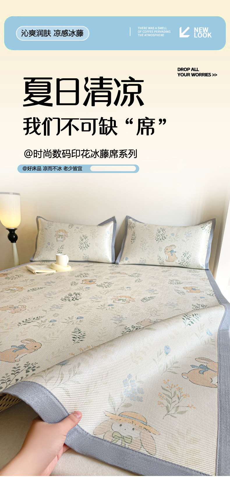 柒月家居 2026新款小清新印花冰藤系列凉席席子-平铺款 草丛萌兔