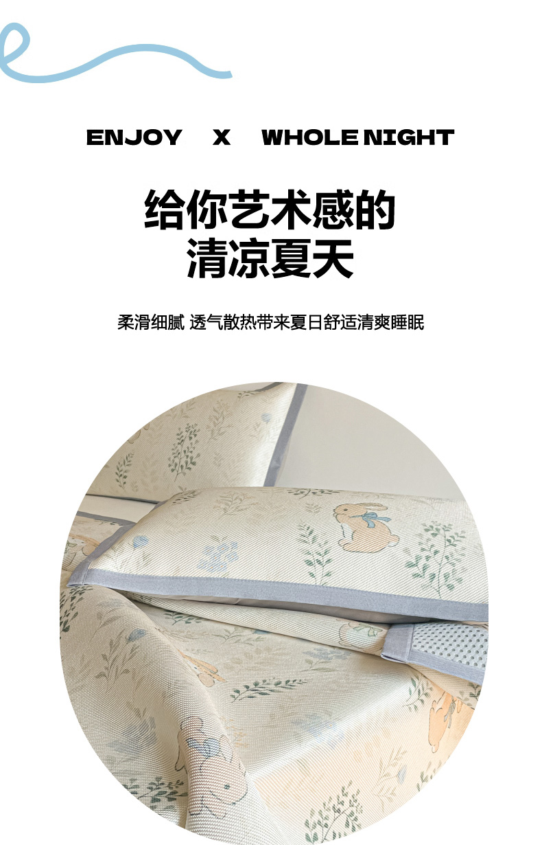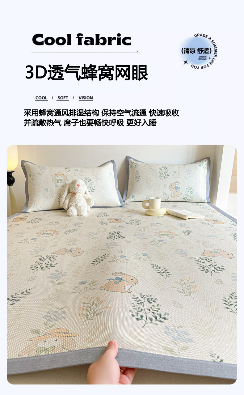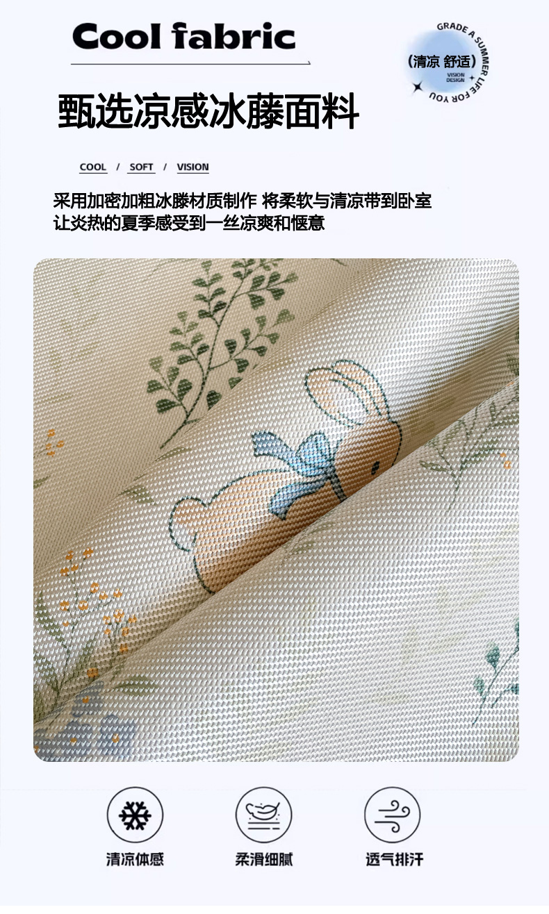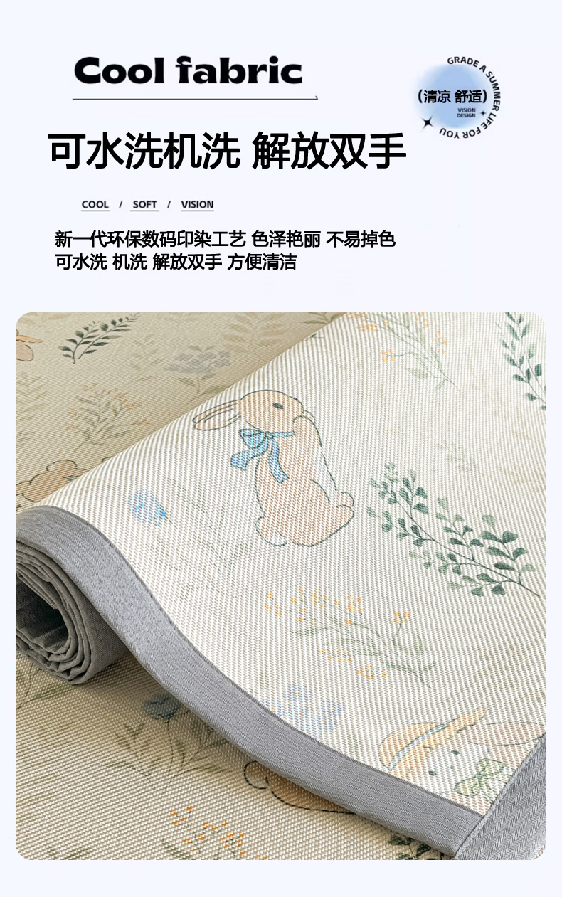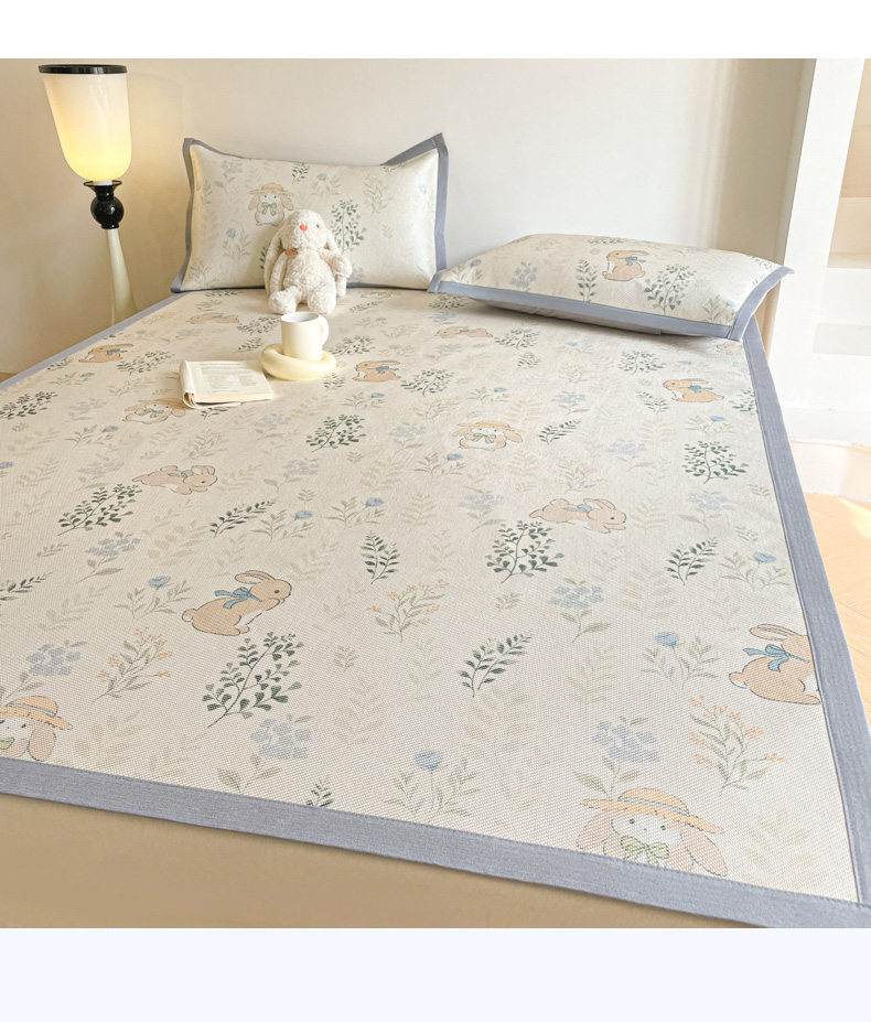 商品名称:柒月家居 2026新款小清新印花冰藤系列凉席席子-平铺款 草丛萌兔