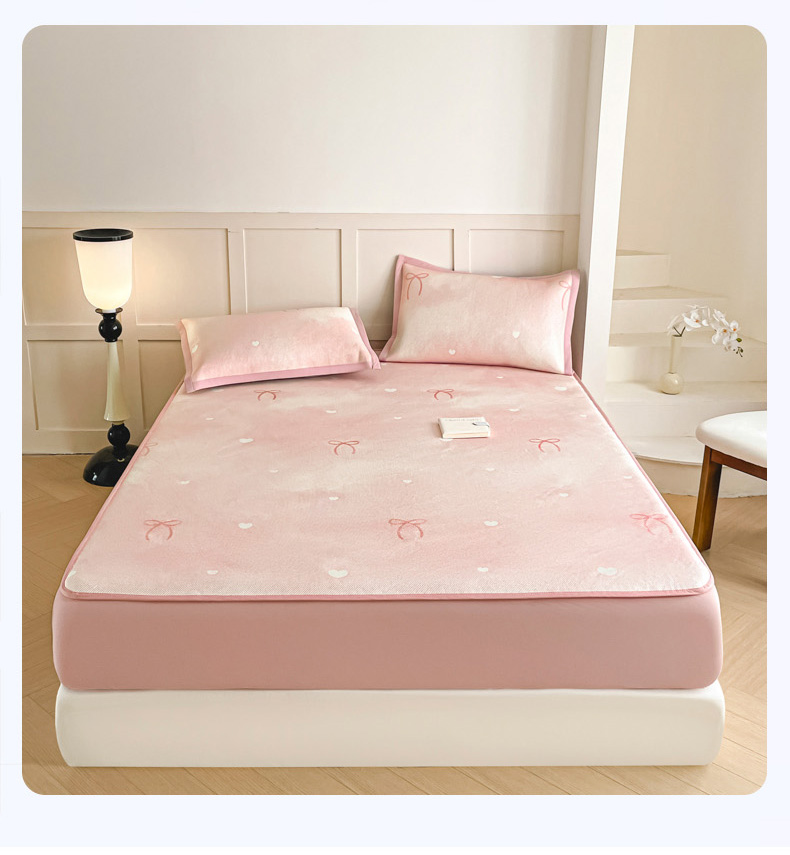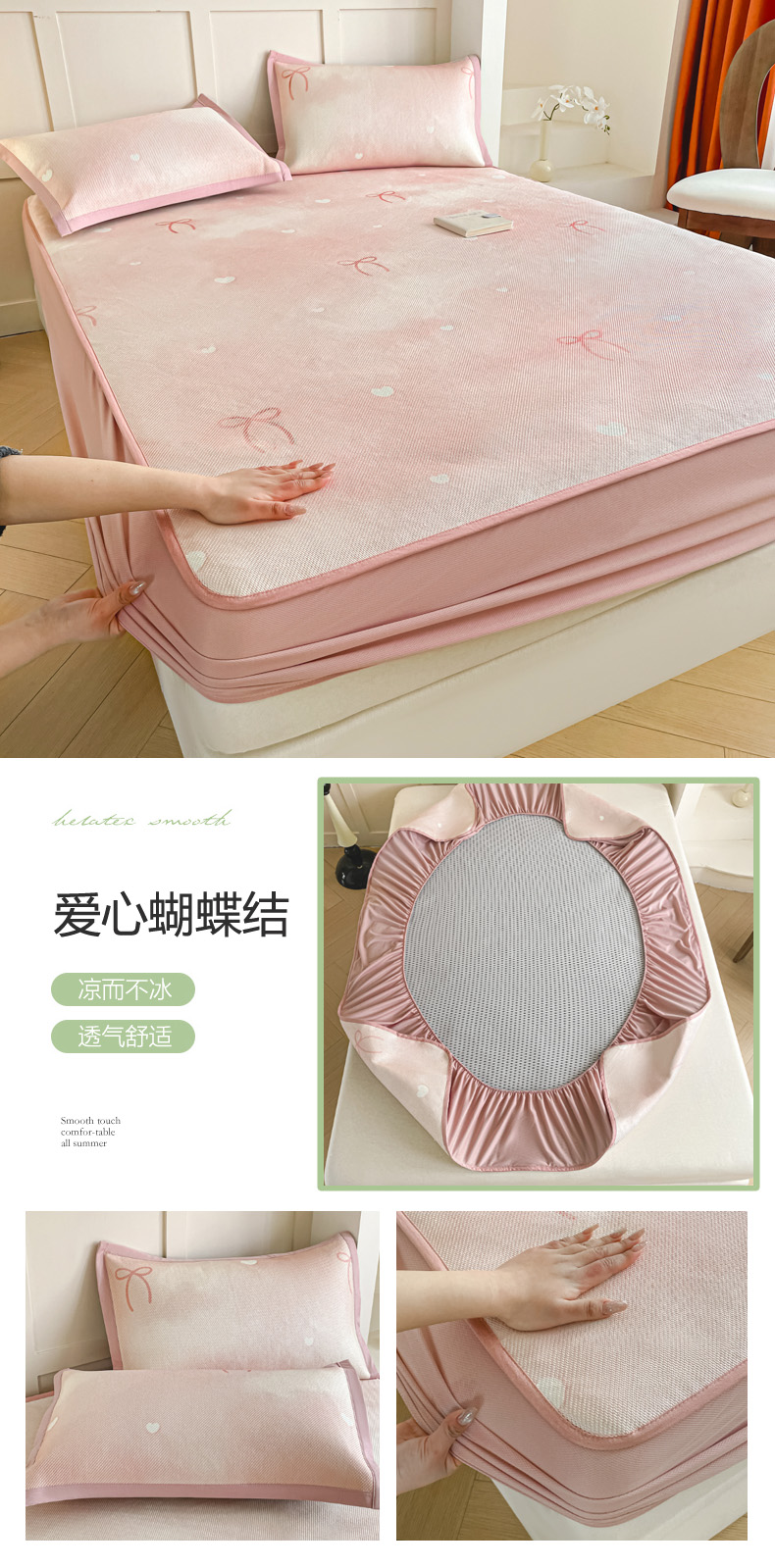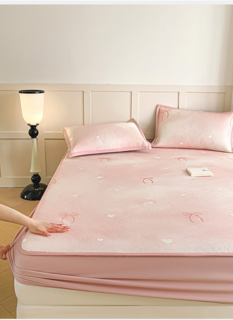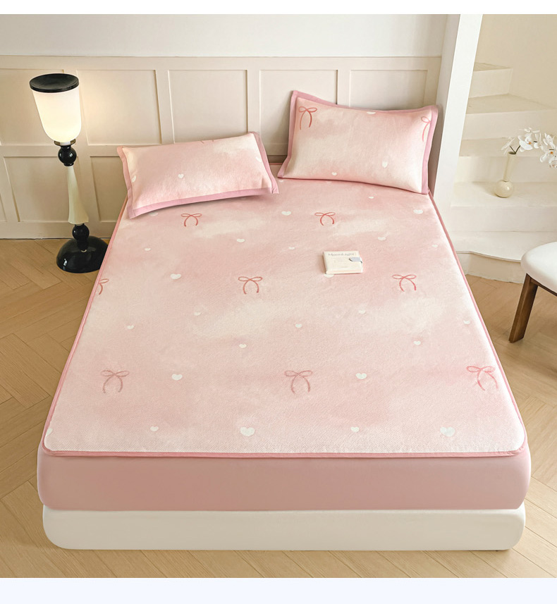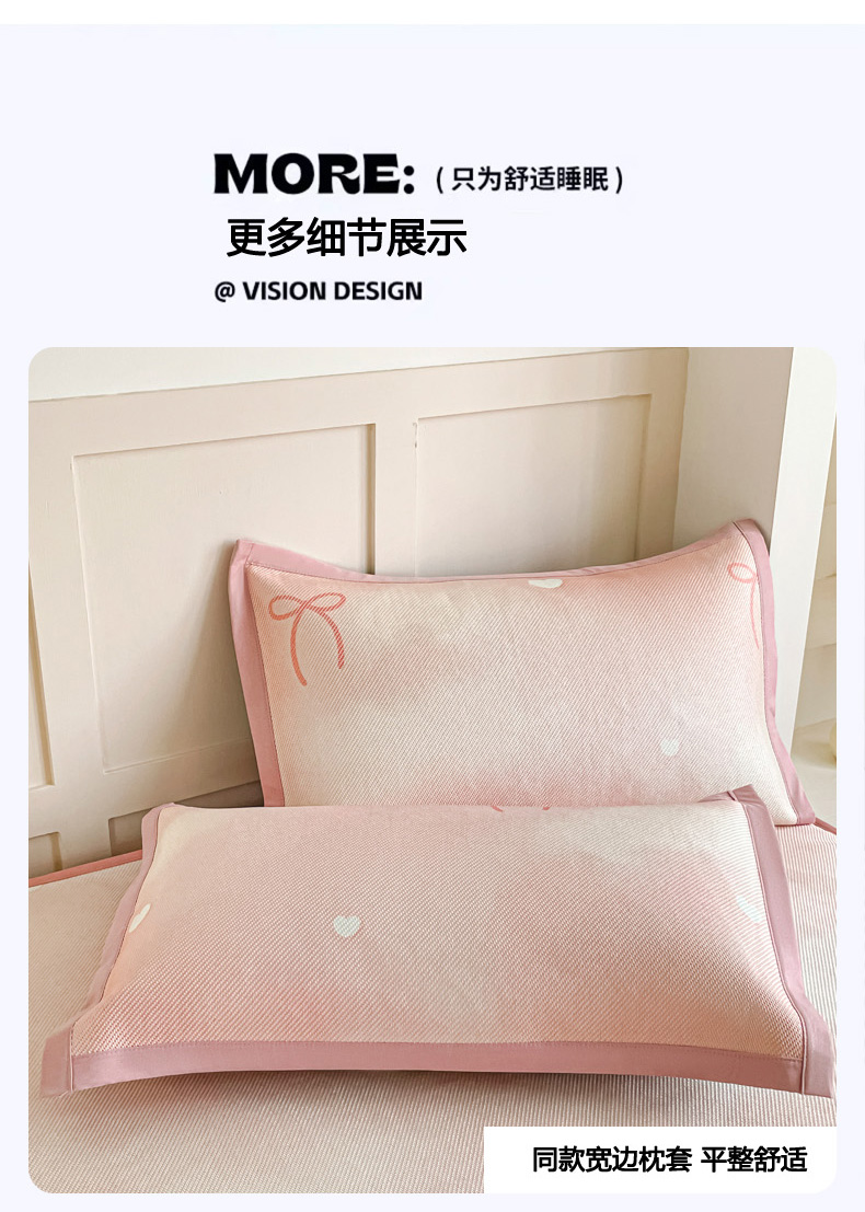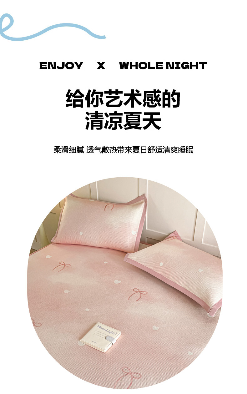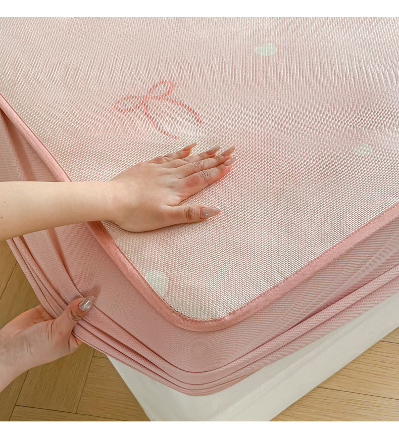 商品名称:柒月家居 2026新款小清新印花冰藤凉席席子-床笠款 爱心蝴蝶结