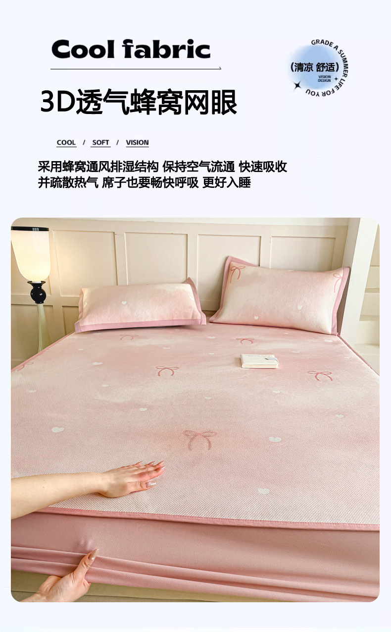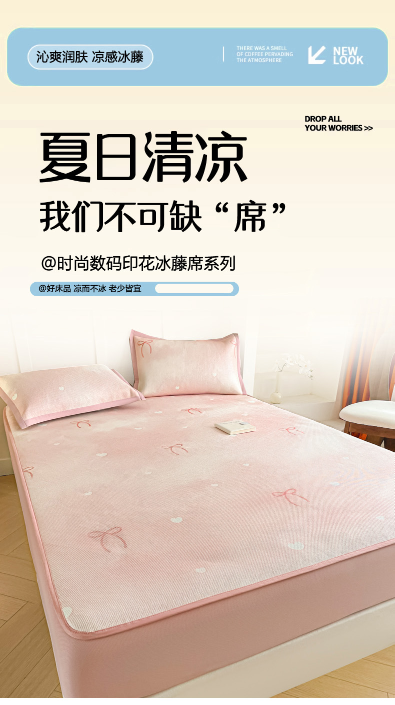 (总)柒月家居 2026新款小清新印花冰藤凉席席子-床笠款,爱心布布,爱心蝴蝶结,粉色花海,格格熊,花间-粉,花蔓,绿茵,猫猫日记,夜空