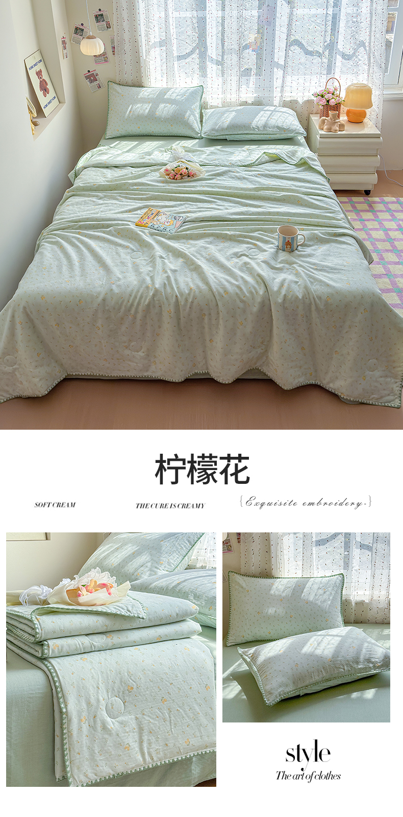 • 91家纺网 家纺一手货源 找家纺 (总)被窝家纺 2026新款全棉双层纱提花夏被夏凉被空调被四件套-青柠桃夭,青柠,桃夭