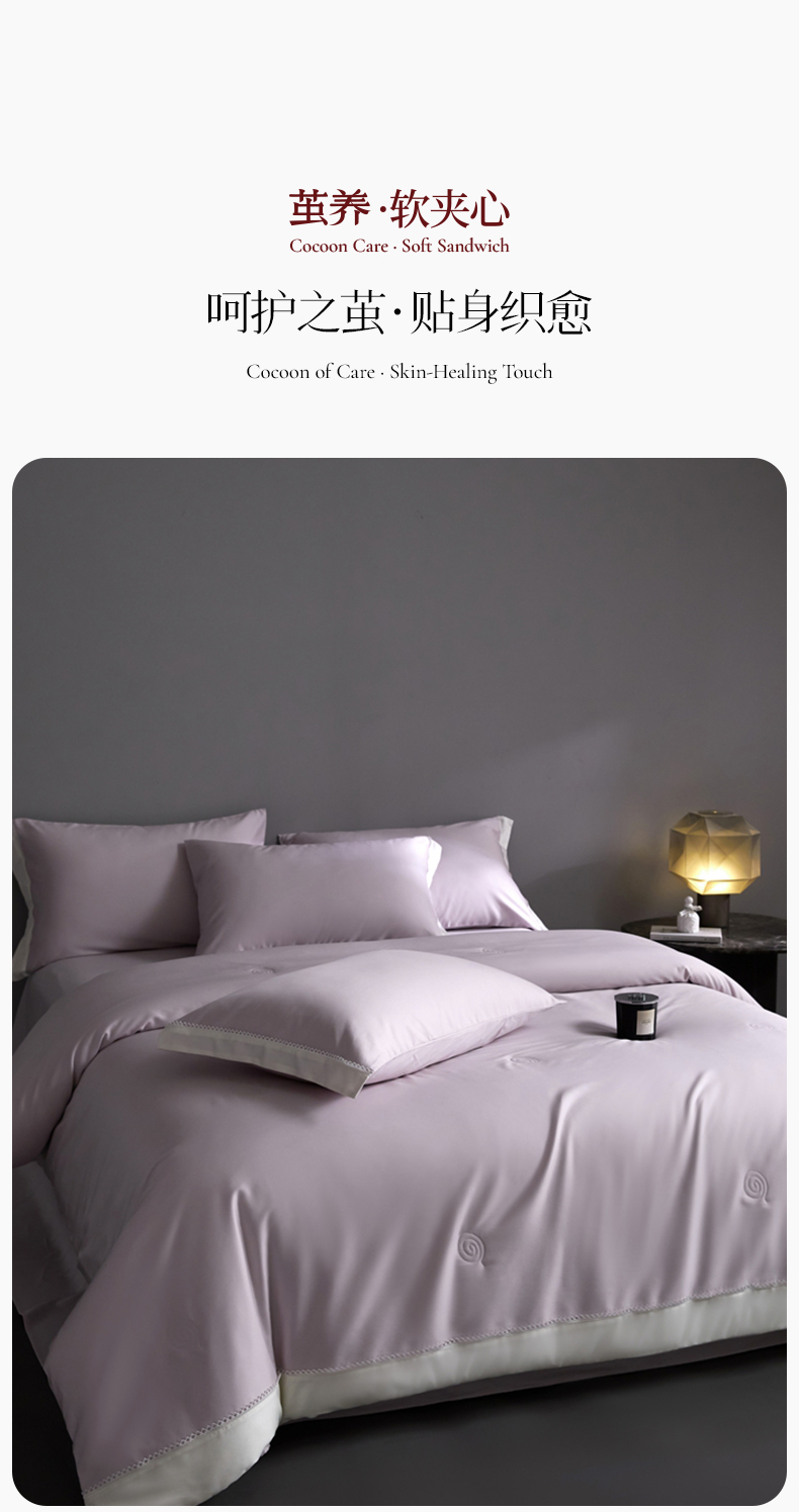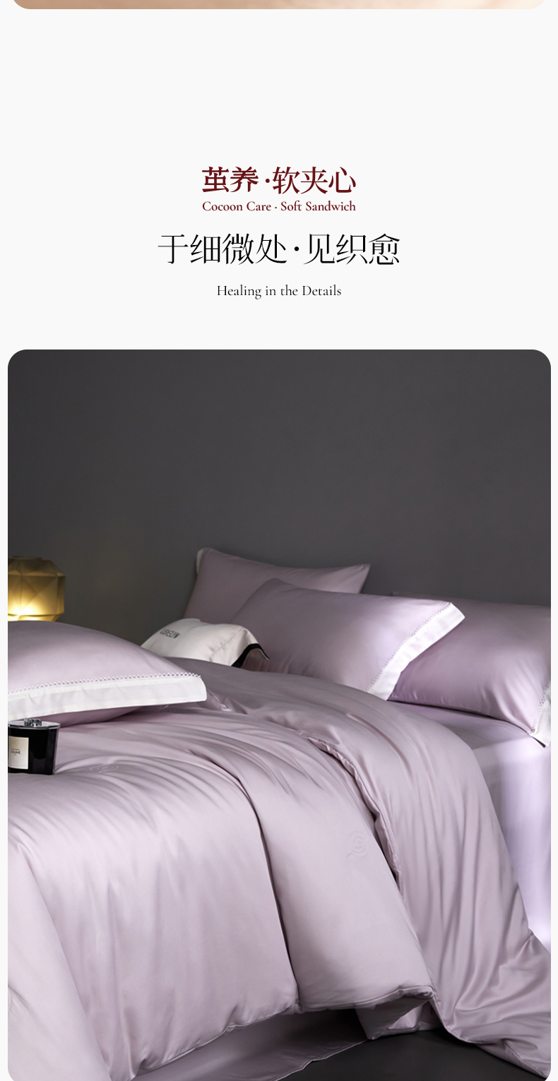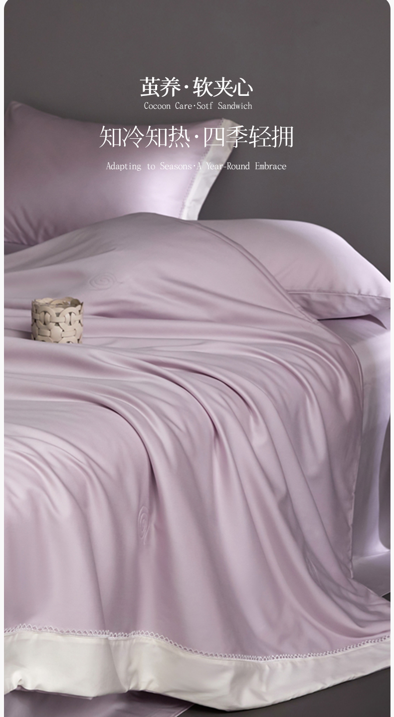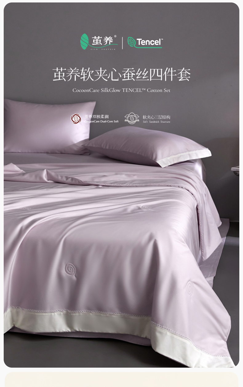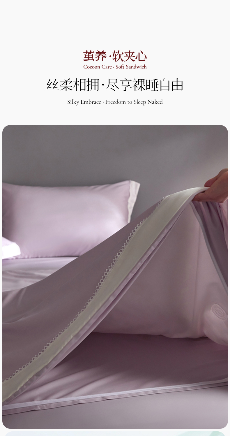 金奇达家纺 2026新款茧养软夹心蚕丝四件套-丝颜悦色(标准号全网控价(折后券后)不低于299元 单夏被会员-40元 四件套会员-30) 丝颜悦色-水雾紫