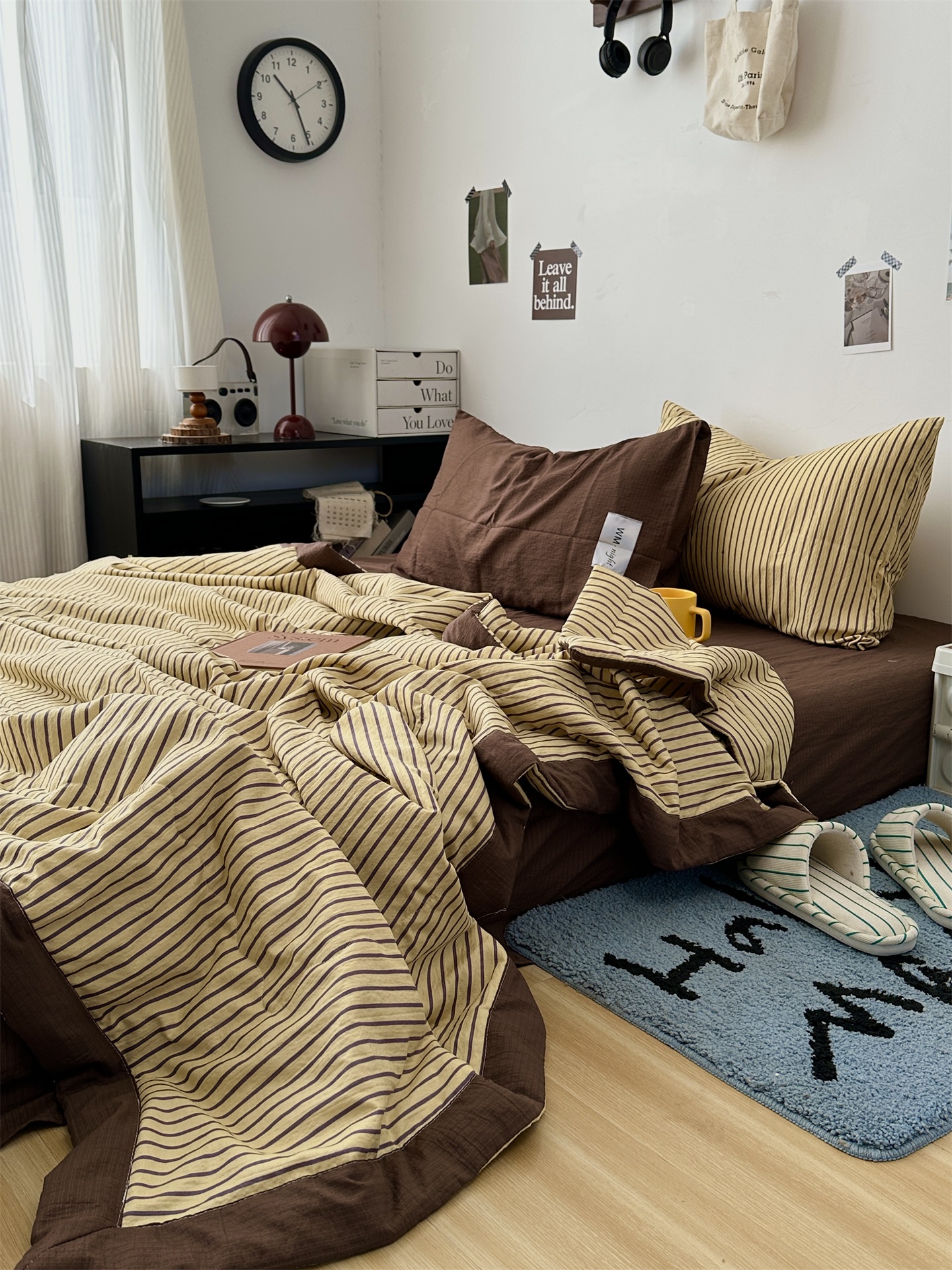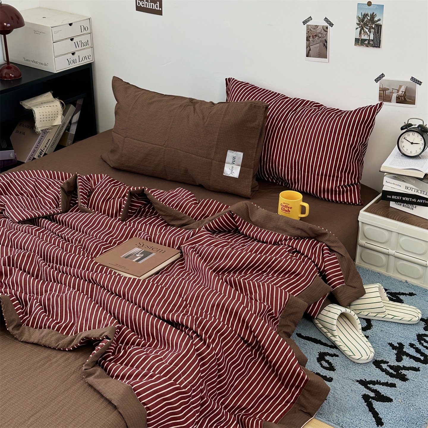 (总)拾一 2026新款条纹简约中古木棉水洗棉四件套,慵懒条-黑,慵懒条-红,慵懒条-灰,慵懒条-卡其,慵懒条-克莱因蓝,慵懒条-奶茶,慵懒条-棕