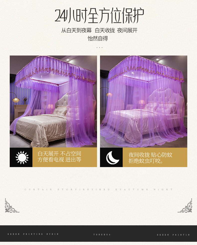 (总)舞夜盛世 2026新款u型拉幕导轨蚊帐轨道蚊帐落地宫廷蚊帐—春暖花开,春暖花开-粉色,春暖花开-黄色,春暖花开-水绿,春暖花开-玉色,春暖花开-紫色