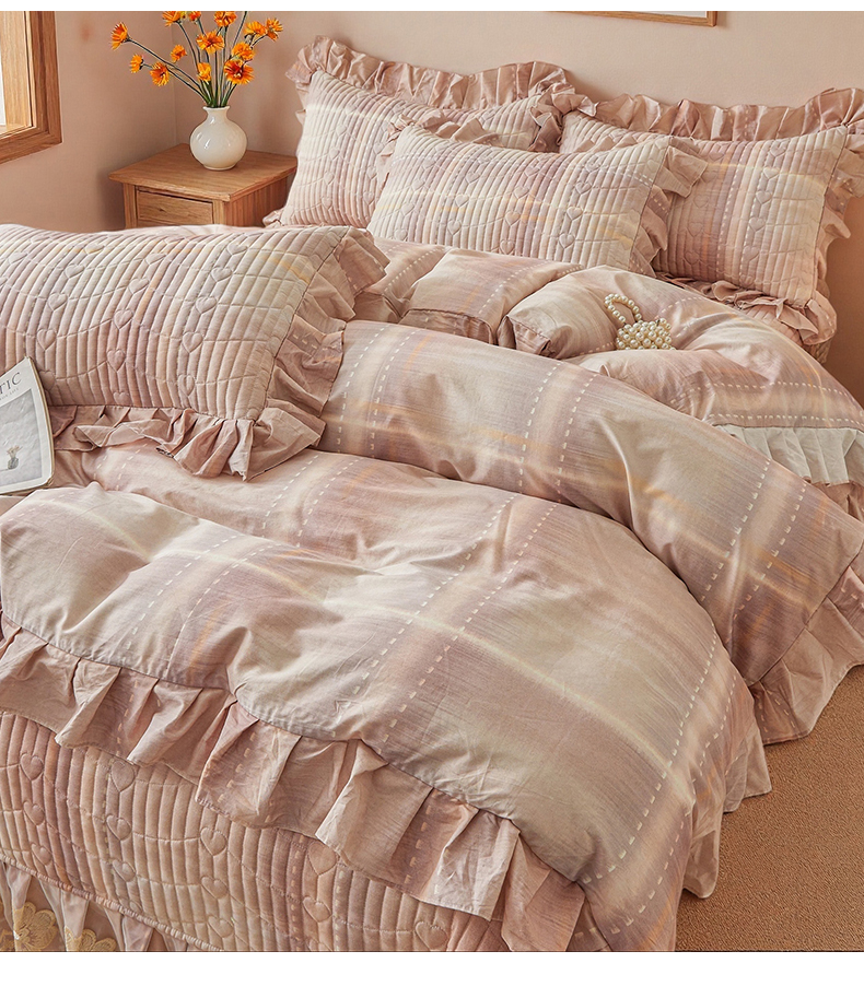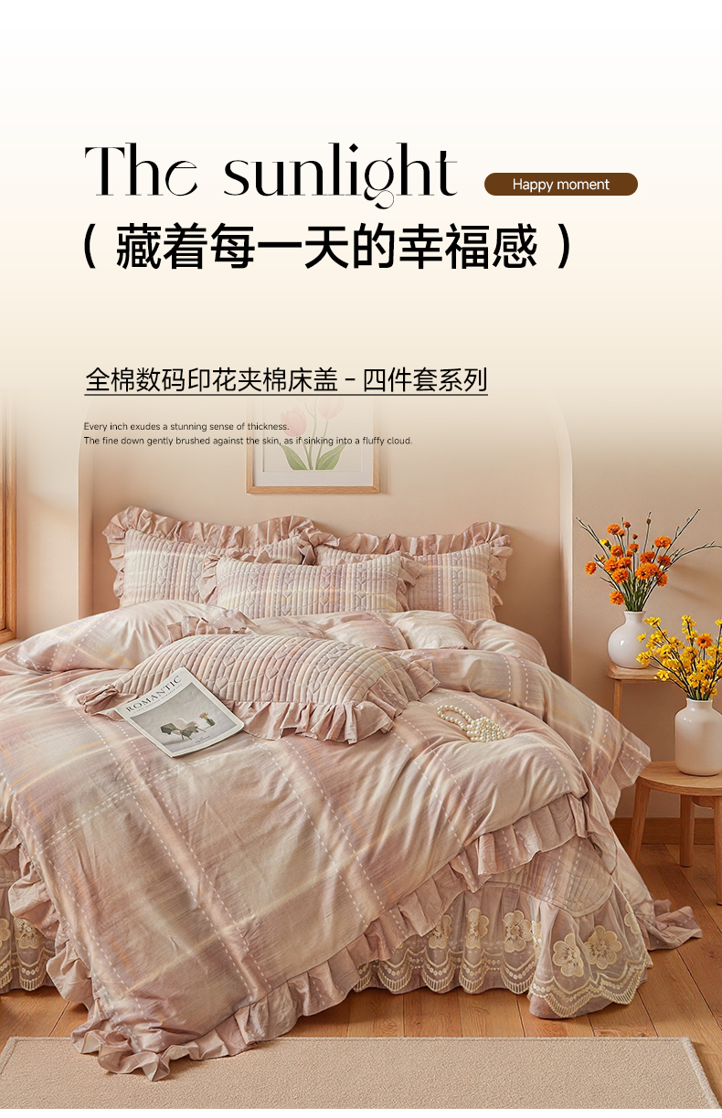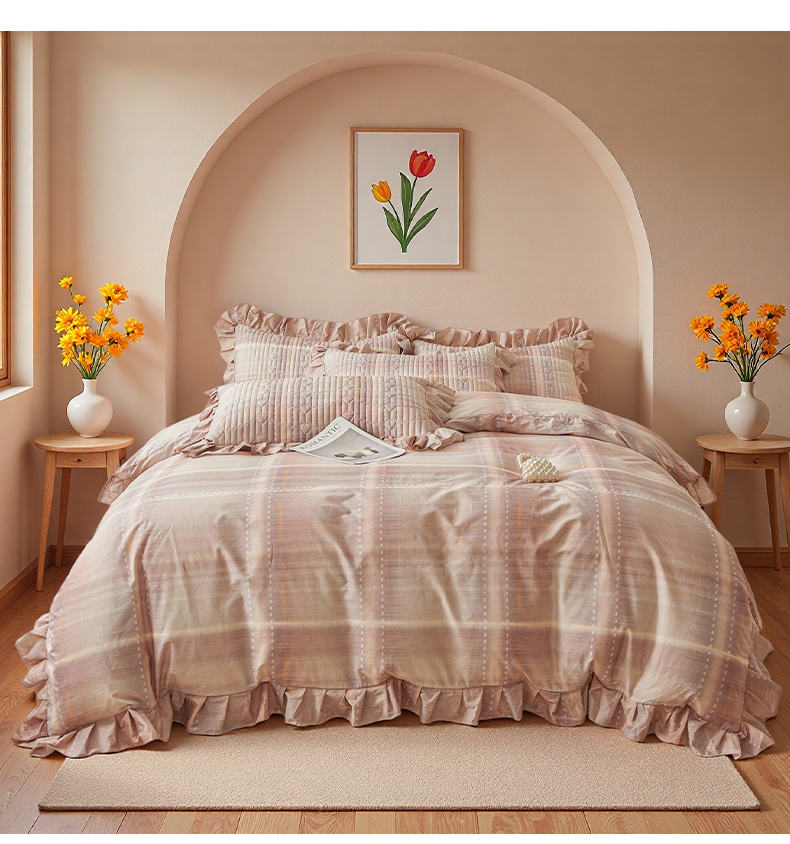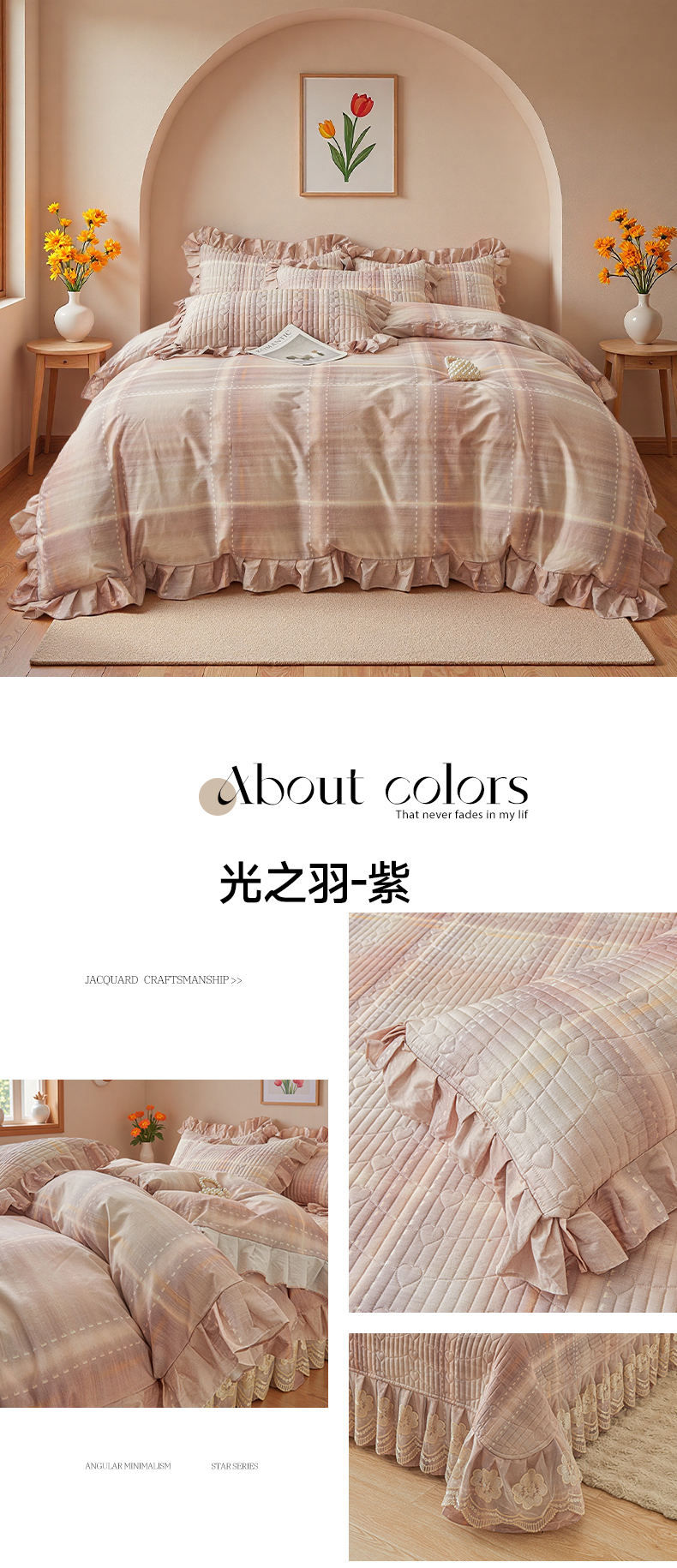 当前位置: 91家纺网 > 商品网购 > 床品套件 > 四件套 > 全棉普通四件套 > 宜凡家纺 2026新款全棉数码印花床盖四件套格子系列 光之羽-紫