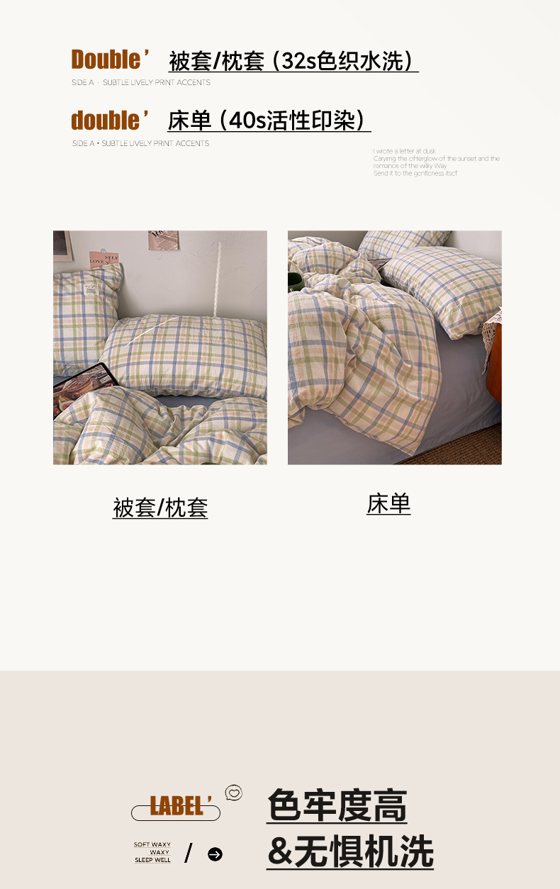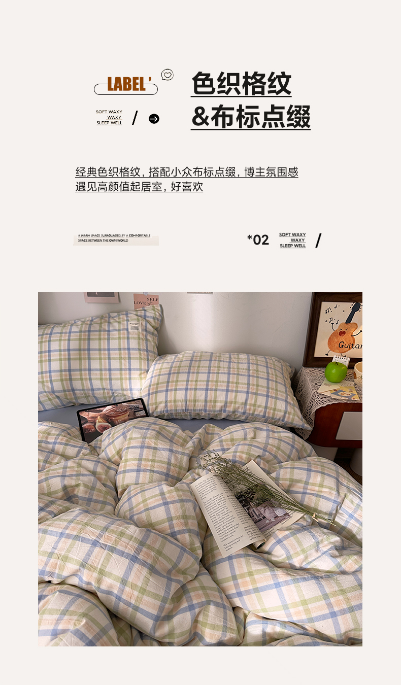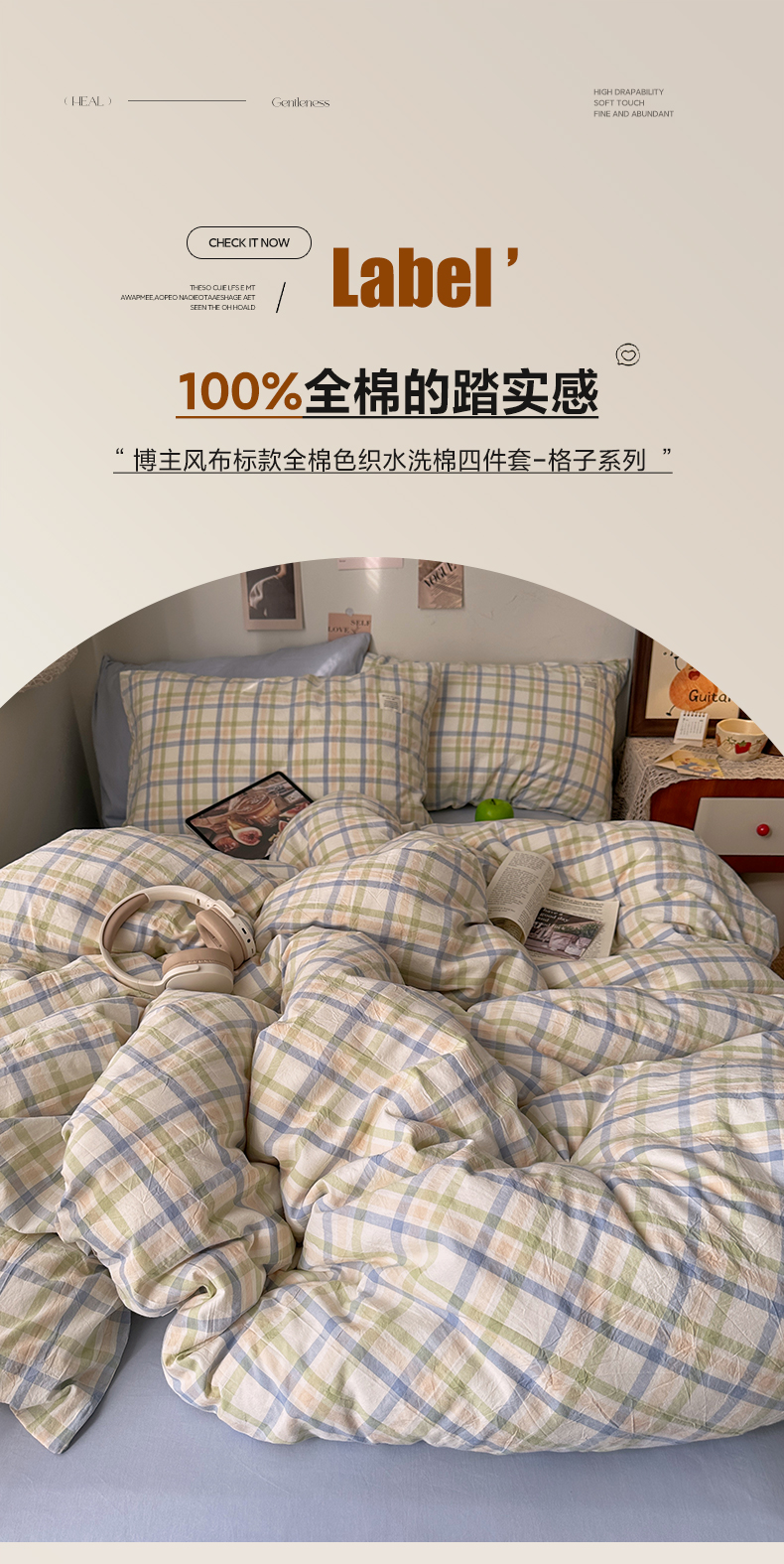 当前位置: 91家纺网 > 商品网购 > 床品套件 > 四件套 > 全棉普通四件套 > 艾咪-Amy ntmy 2026春夏新款布标格纹款全棉纯棉色织水洗棉四件套 布标款-屿光