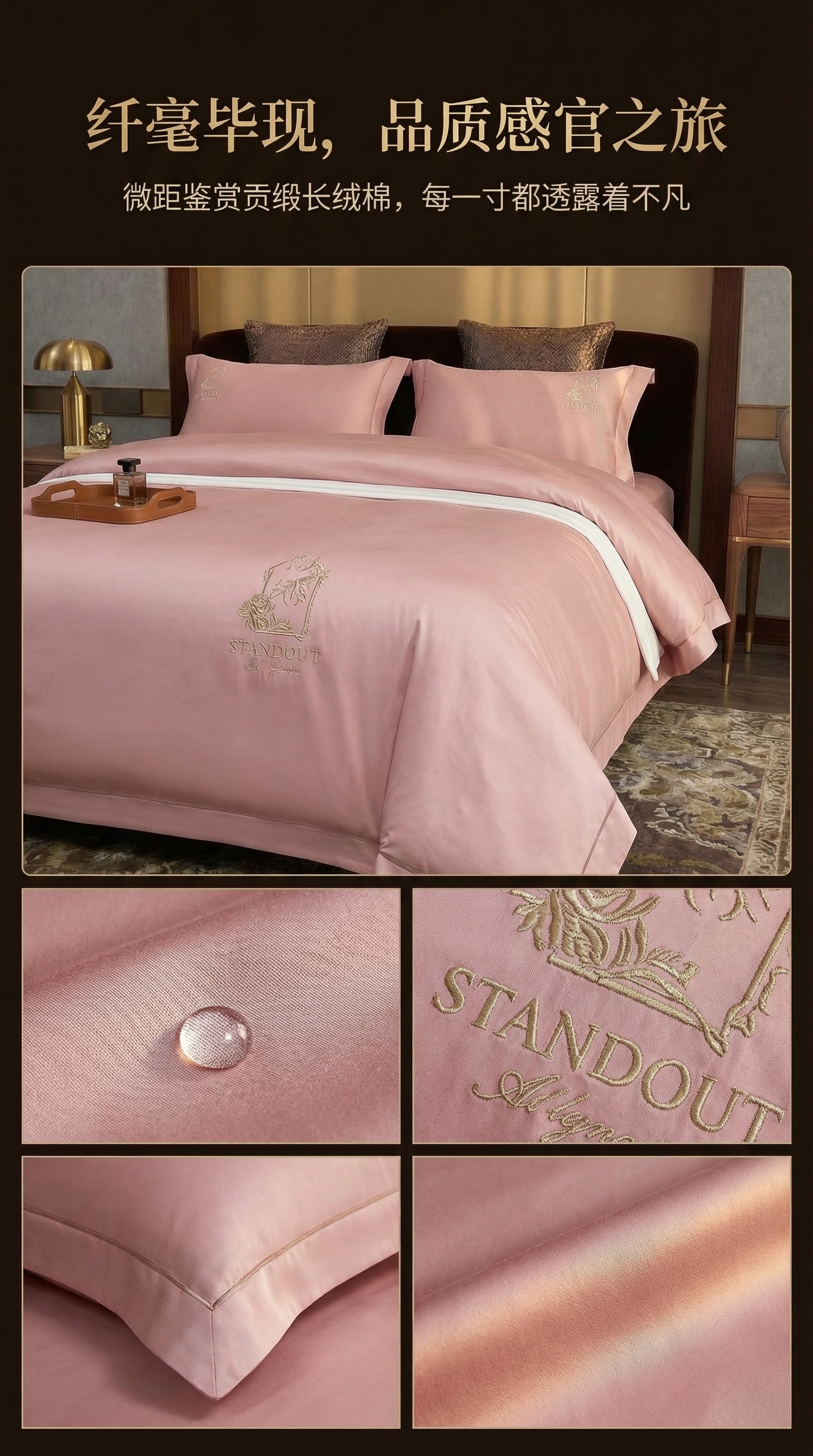 商品名称:U品汇 2026新款100支全棉纯棉长绒棉刺绣花四件套60S贡缎100%棉丝滑夏季冰丝凉爽 米拉-藕粉玉