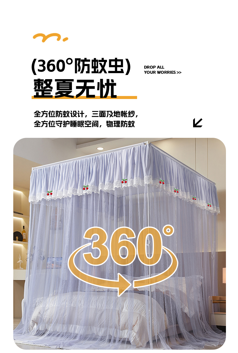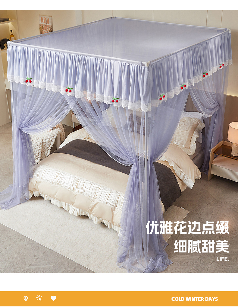 (总)雪姿家纺 2024新款韩版公主风方顶落地蚊帐-优雅,优雅-海洋兰,优雅-灰色,优雅-抹茶绿,优雅-暖玉色,优雅-雅白色