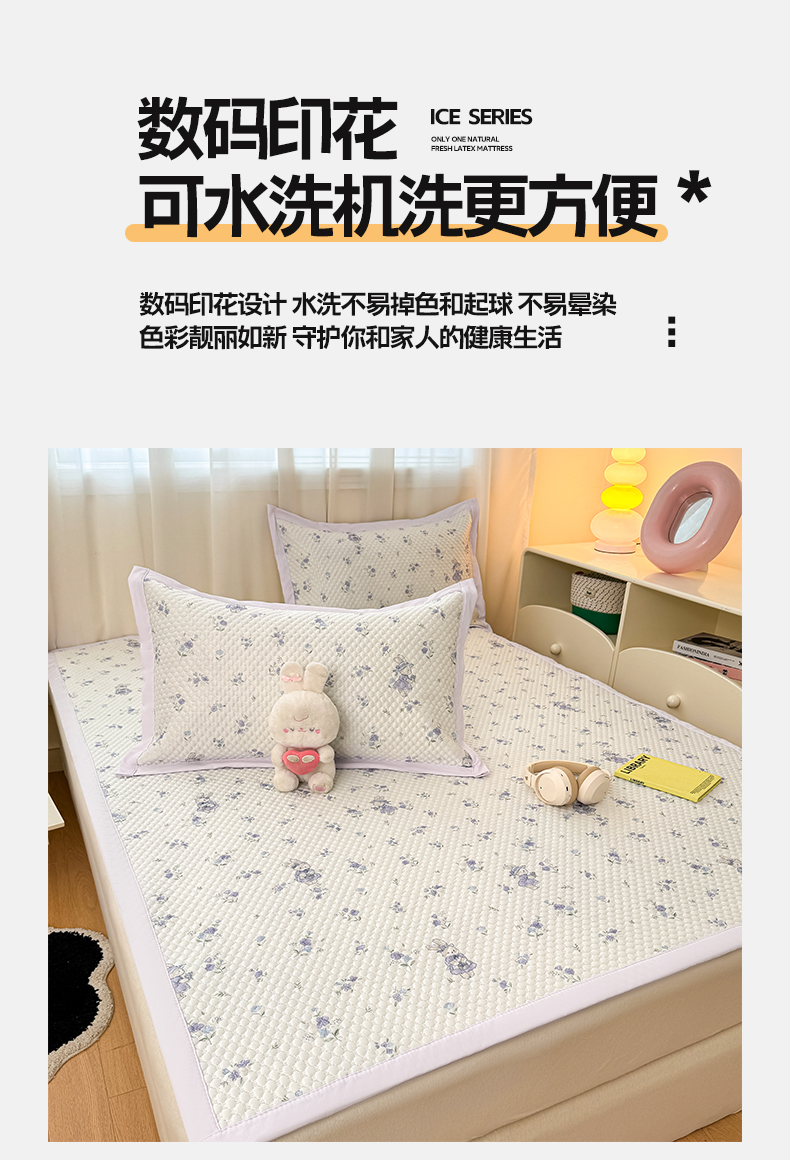 (总)大元 2026新款冰豆豆数码印花席三明治底凉席席子,花田兔影,豹纹猫咪,波点蝴蝶结,花知意,蓝色蝴蝶结,奶霜草莓,趣味小马,糖果小狗,线条小狗,星荣,摇摇马
