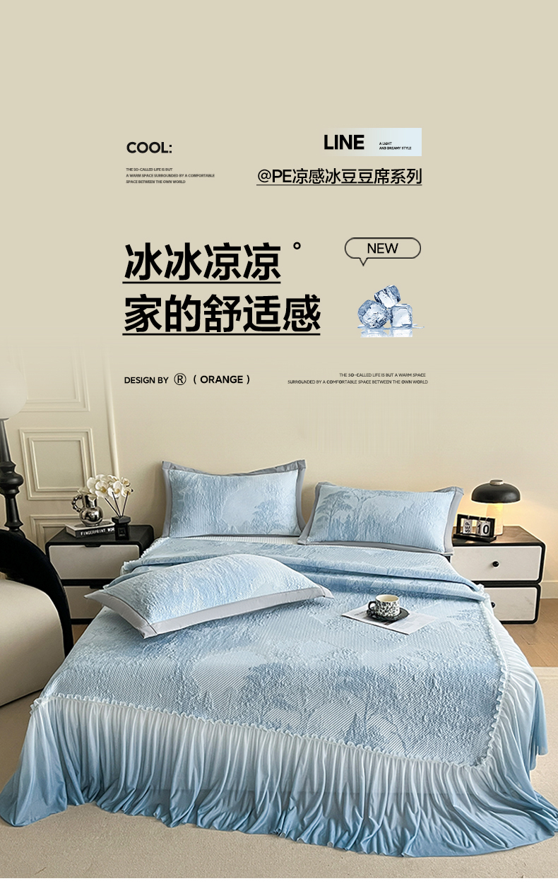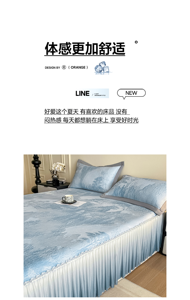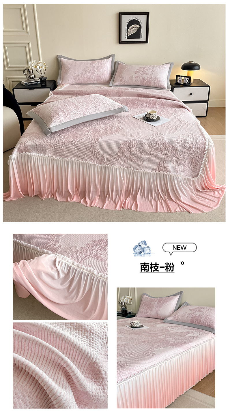 (总)莱米家纺 2026新款PE凉感冰豆豆床裙水墨画系列,南枝-粉,南枝-灰,南枝-蓝,南枝-绿