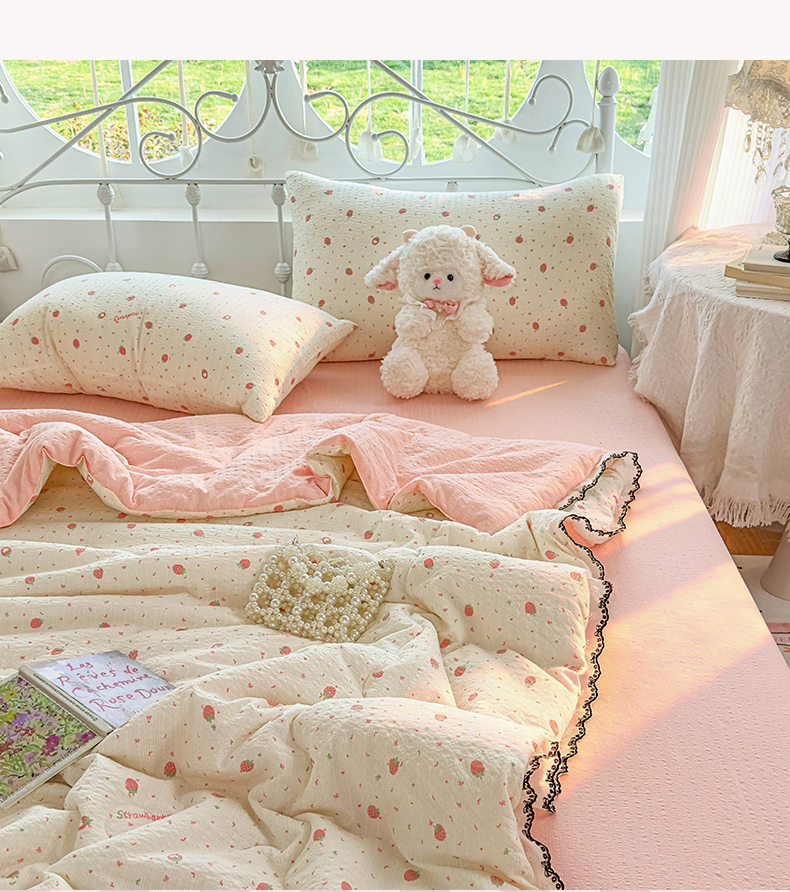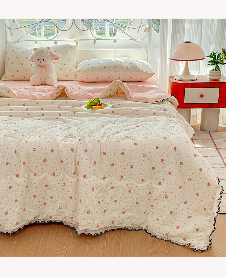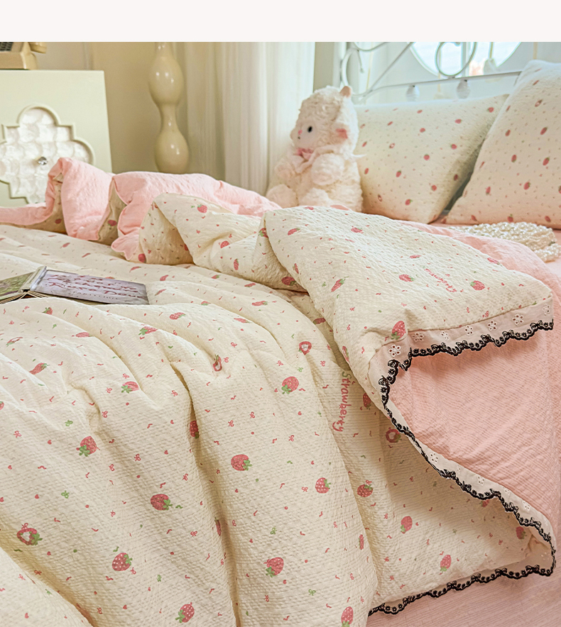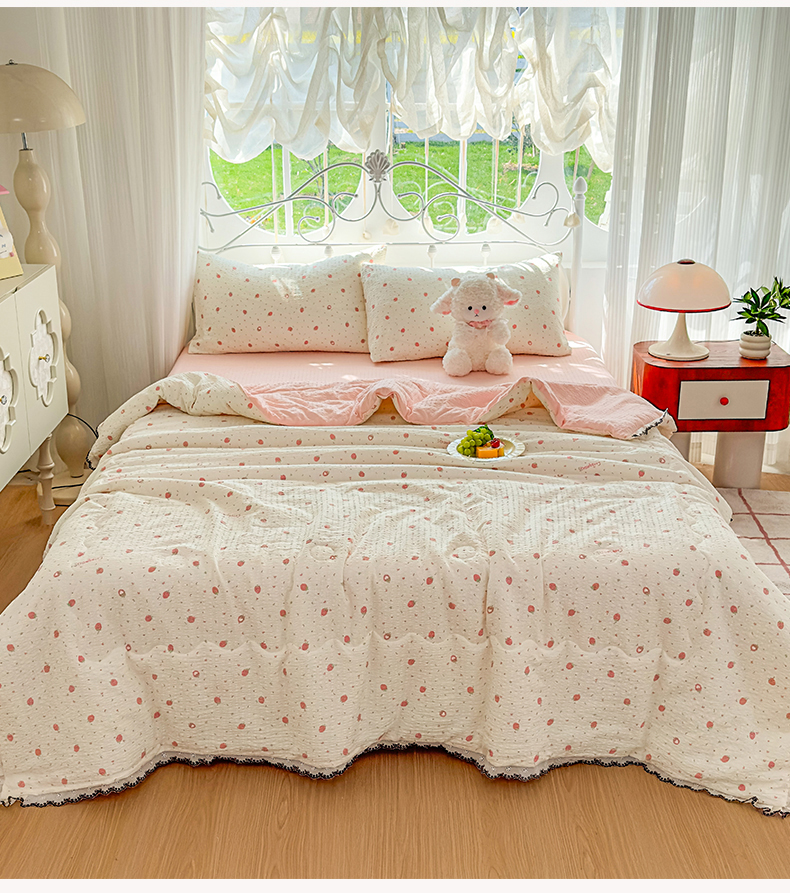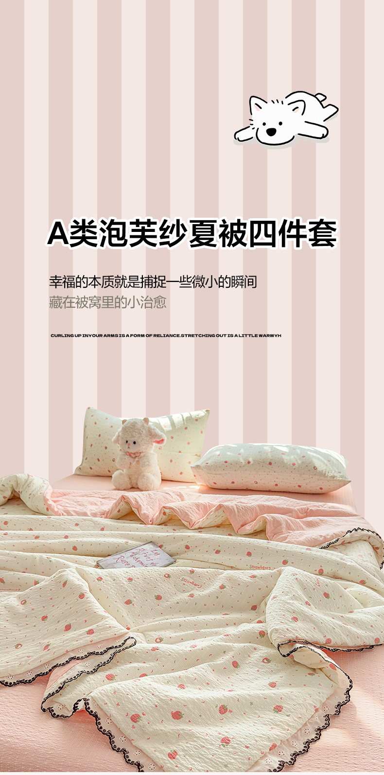 (总)眠势力 2026新款泡芙纱夏被四件套全棉花边空调被夏凉被薄被子