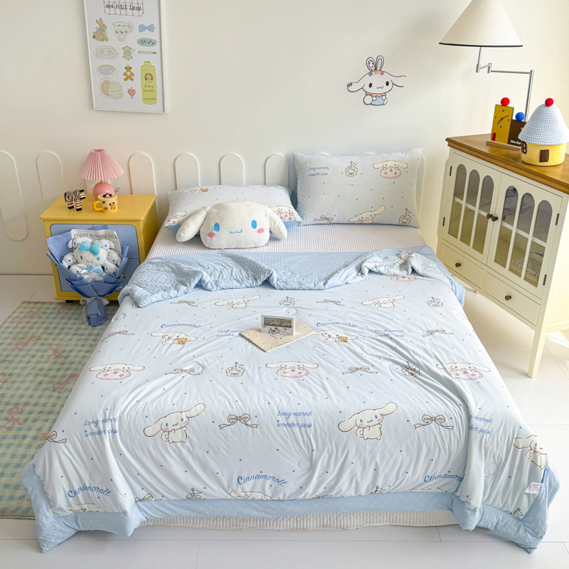 (总)花满路 2024新款有氨凉感丝卡通印花豆豆被儿童被夏被被子,玉桂狗,库洛米,KT猫,卡帕狗,米乐蒂