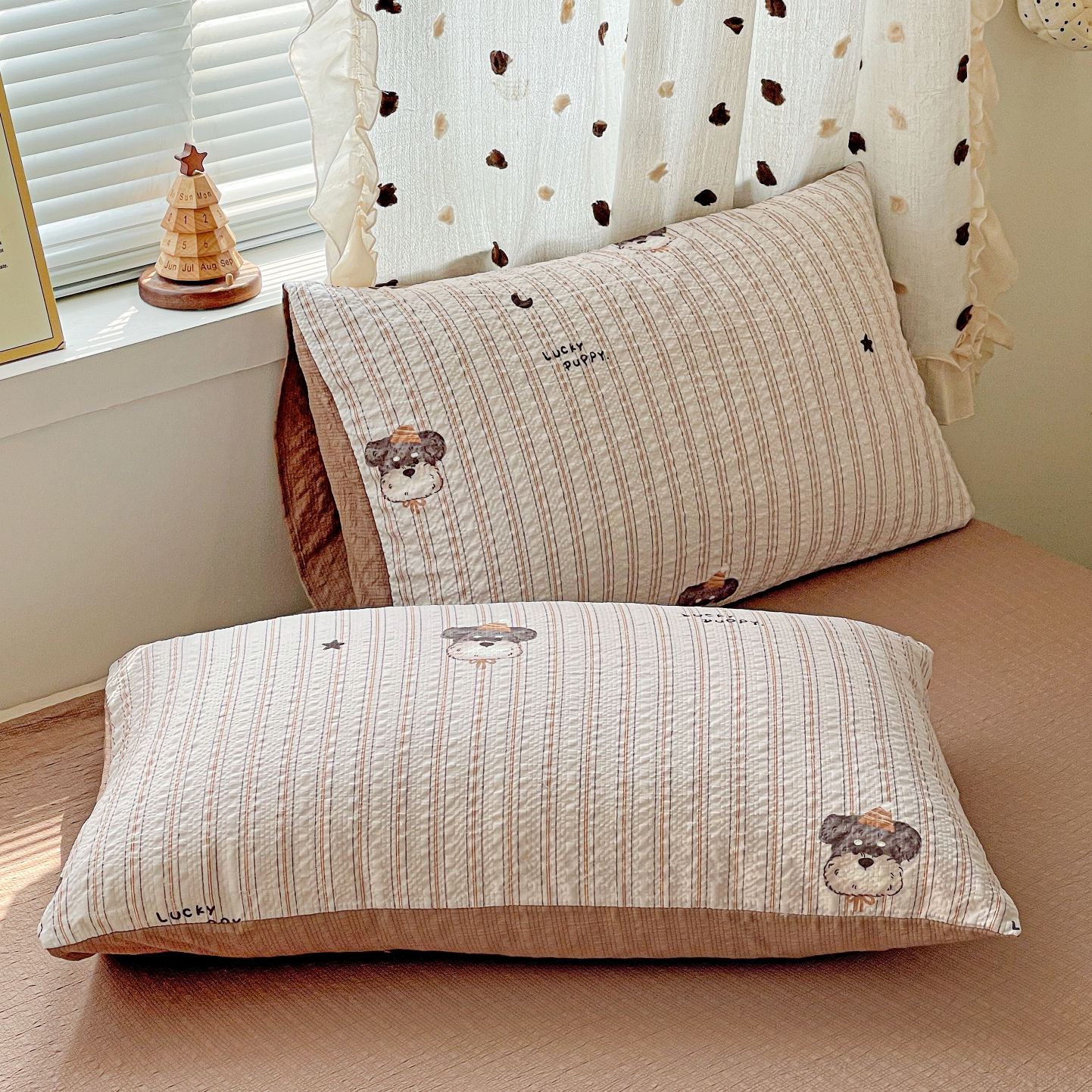 一比一家纺 2026新款泡芙纱简款夏被四件套 星星狗