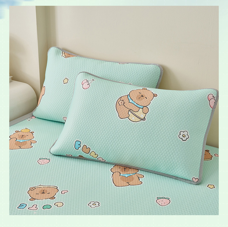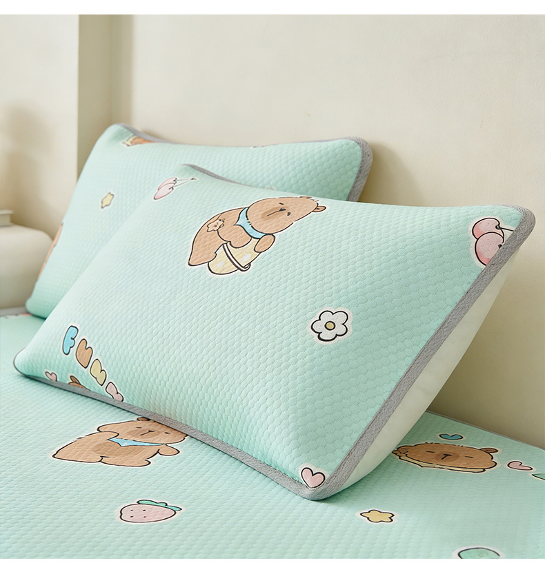 商品名称:奇丝雅 2026新款夏季A类卡通印花冰豆豆冰丝凉席枕套凉感家用可机洗单人学生宿舍48×74cm一只一对 卡皮巴拉