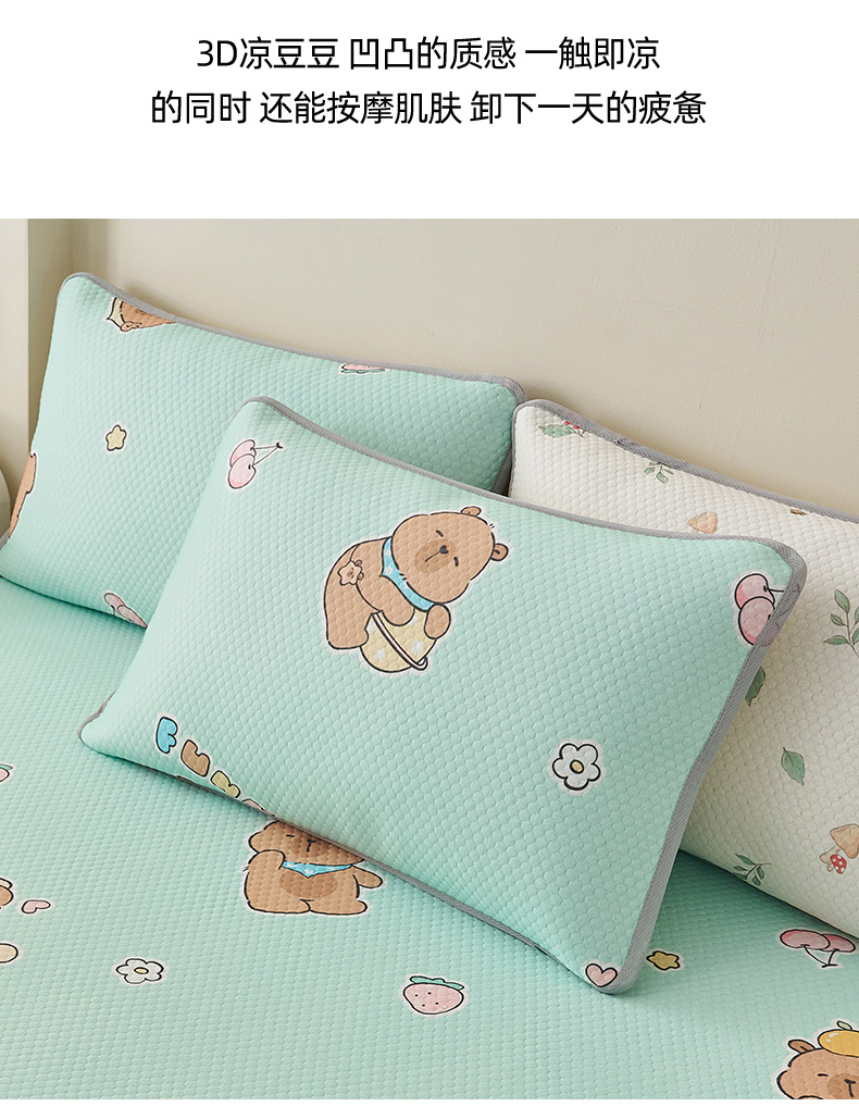 (总)奇丝雅 2026新款夏季A类印花冰豆豆凉席三明治透气网冰丝凉席可机洗学生宿舍上下铺学生床,巴比兔,抱抱熊,饼干熊,海洋世界,卡皮巴拉,蘑菇乐园,甜甜圈,兔宝贝,维尼熊,小企鹅,熊猫家园,叶语