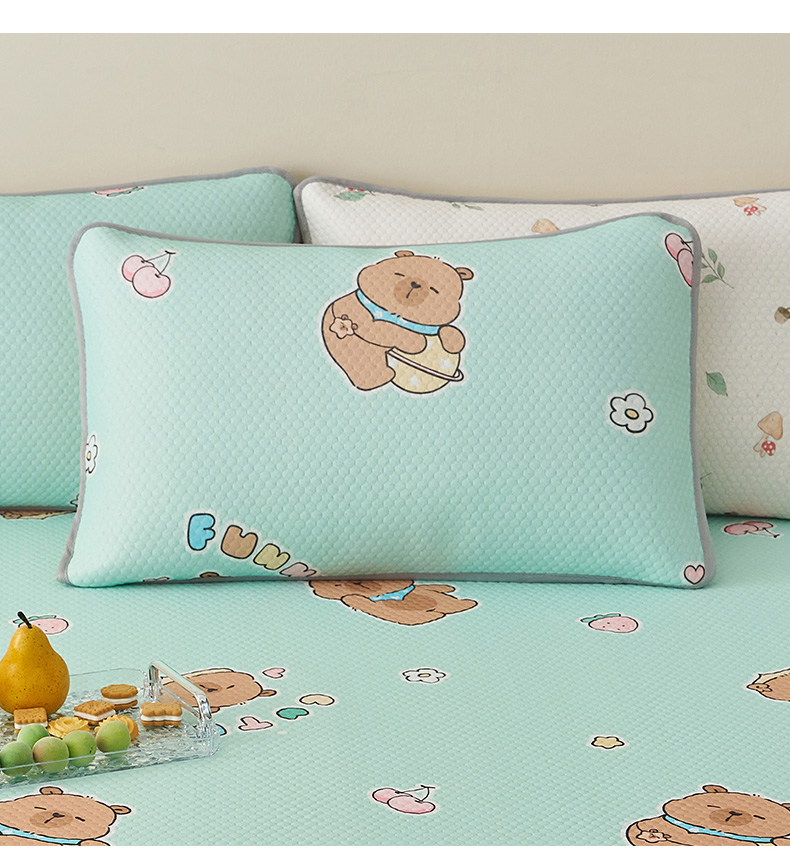 (总)奇丝雅 2026新款夏季A类卡通印花冰豆豆冰丝凉席枕套凉感家用可机洗单人学生宿舍48×74cm一只一对,巴比兔,抱抱熊,饼干熊,海洋世界,卡皮巴拉,蘑菇乐园,甜甜圈,小企鹅,熊猫家园,叶语