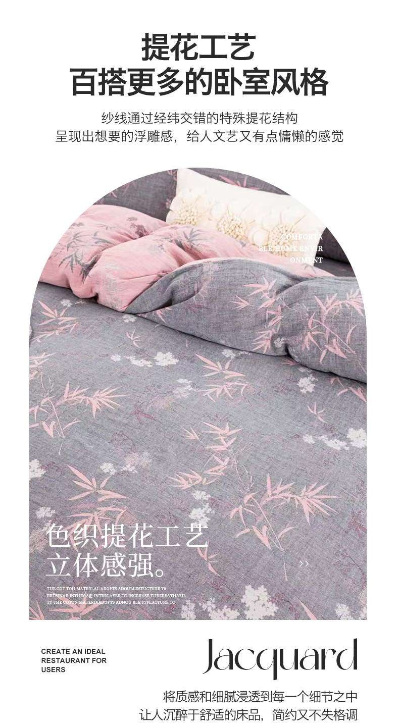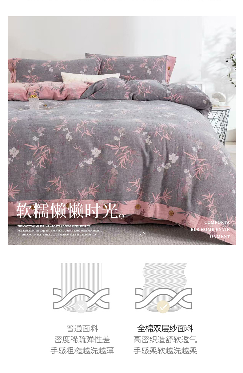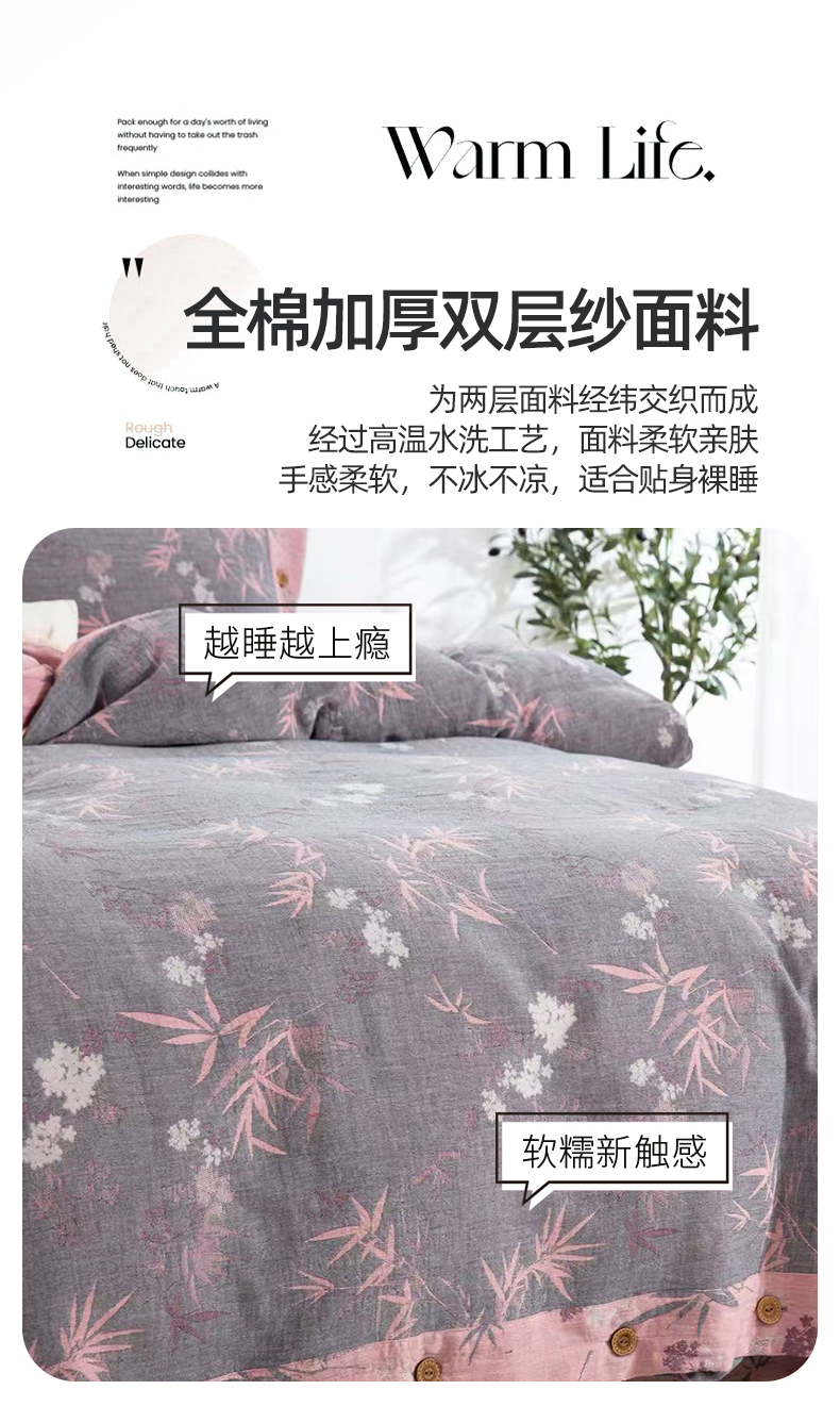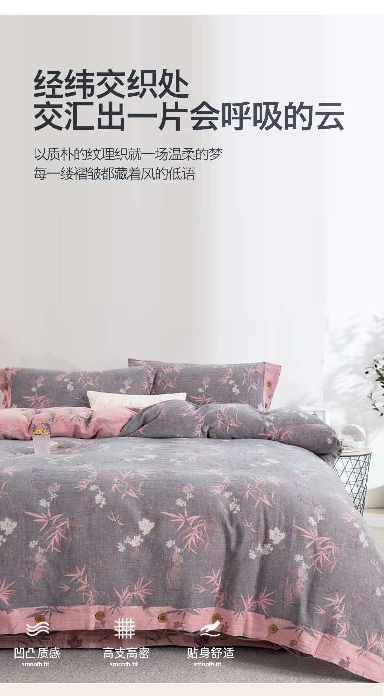 商品名称:(总)云天家纺 2026新款A类全棉纯棉色织提花双层纱纽扣款四件套