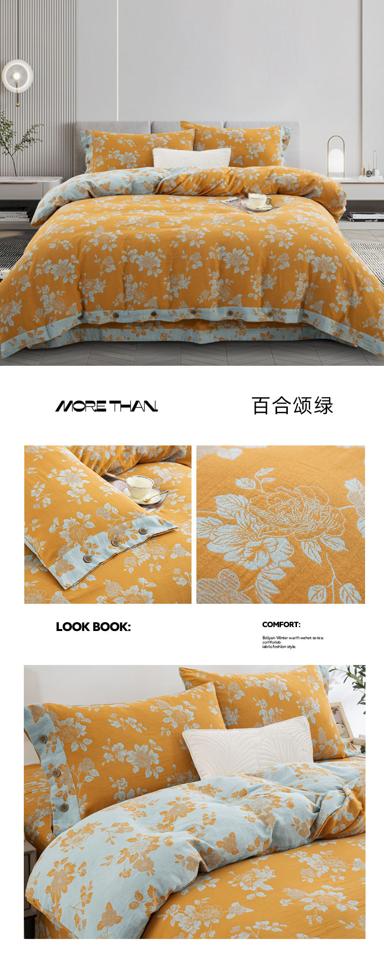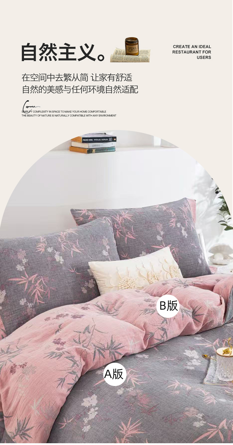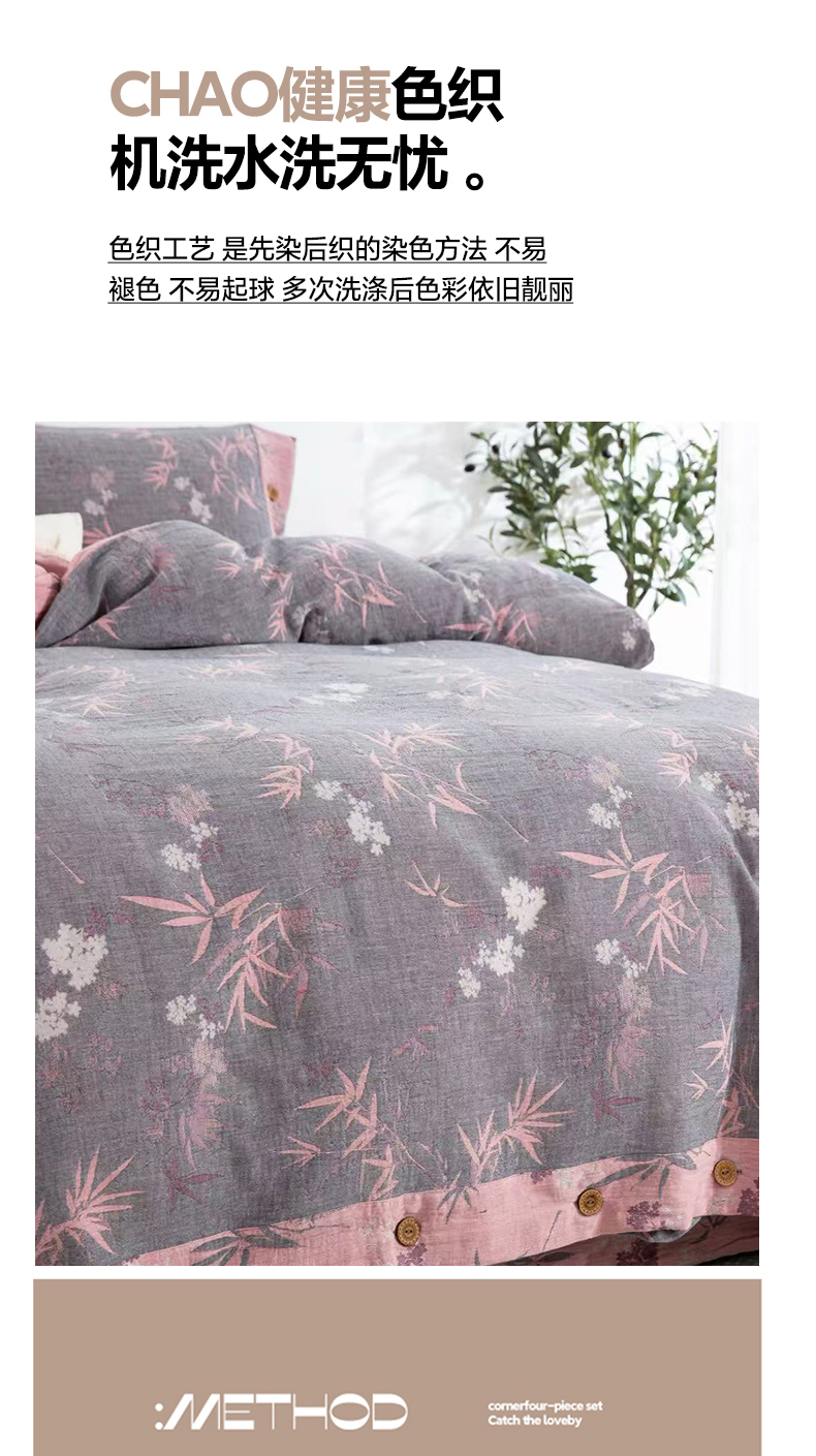 云天家纺 2026新款A类全棉纯棉色织提花双层纱纽扣款四件套 枫林露,枫林露