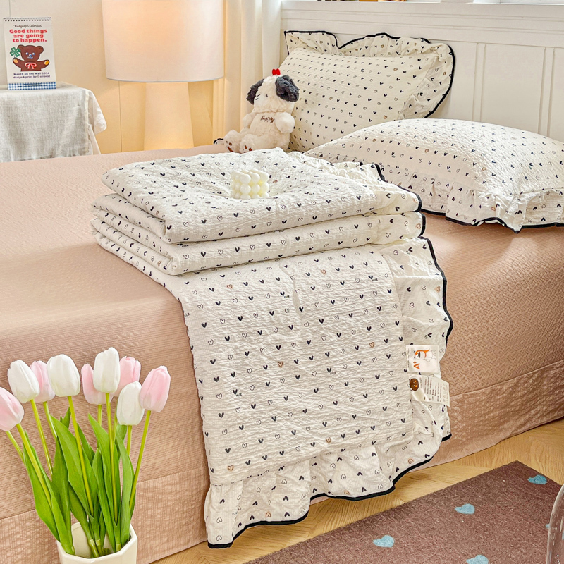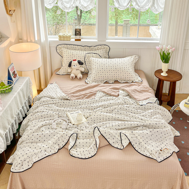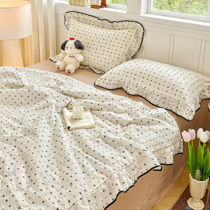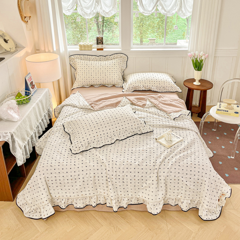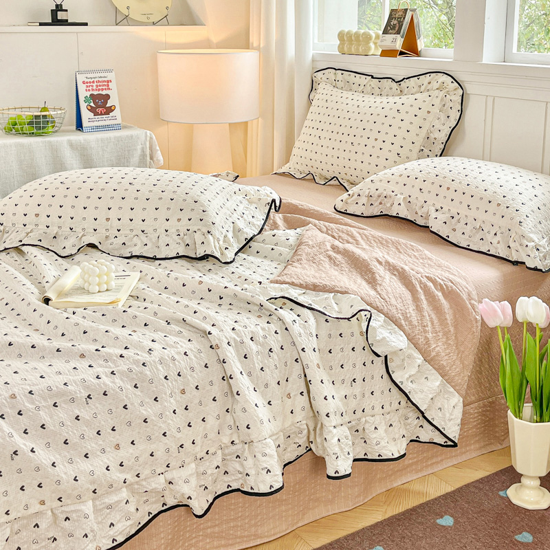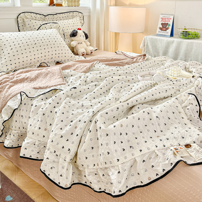 商品名称:利禾家纺 2026新款法式花边泡芙纱夏被四件套 心心相印