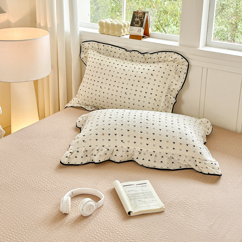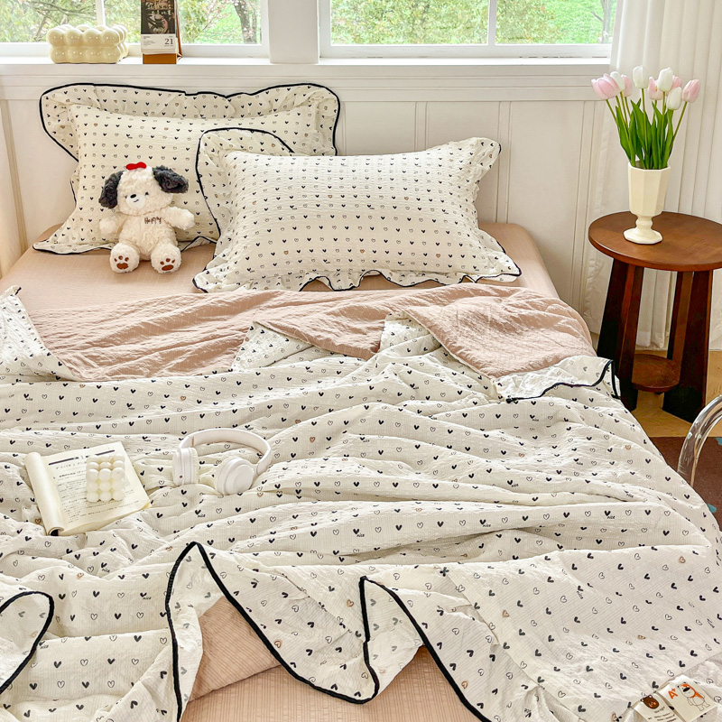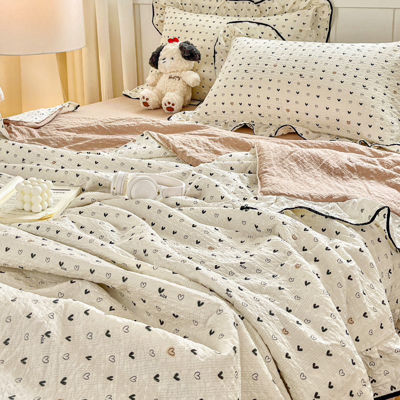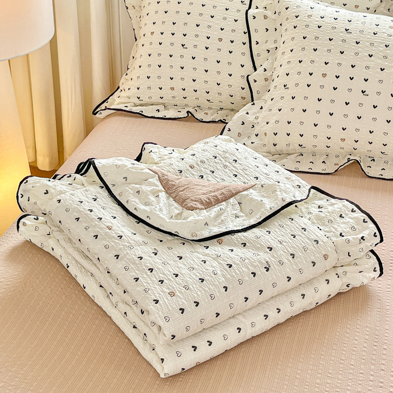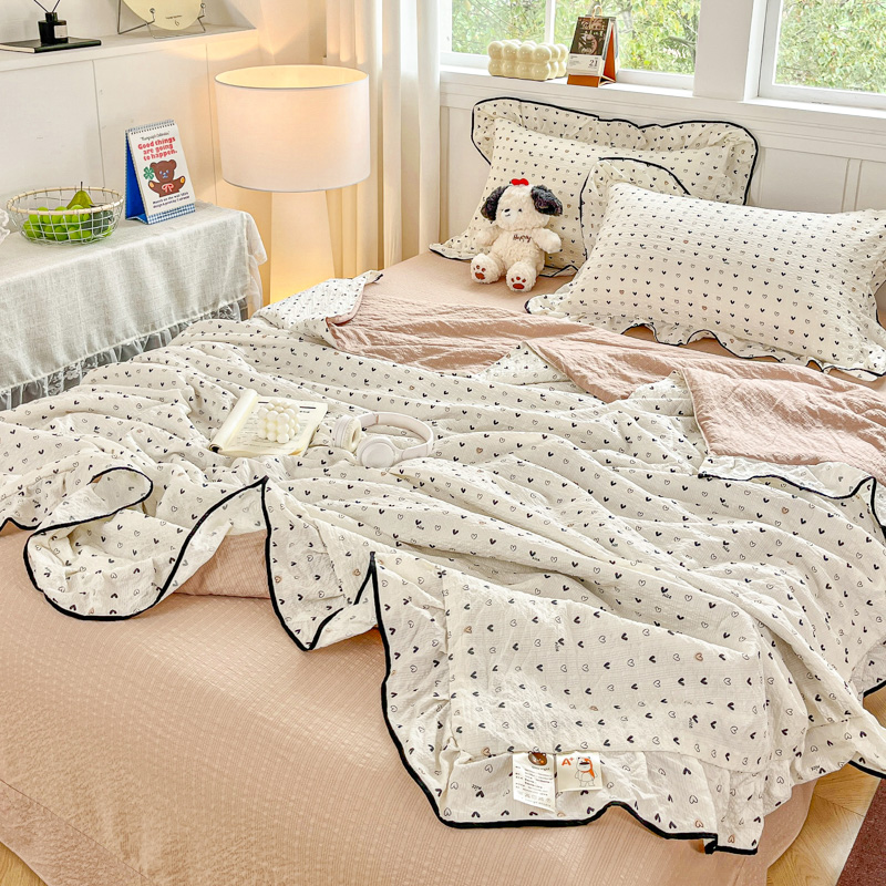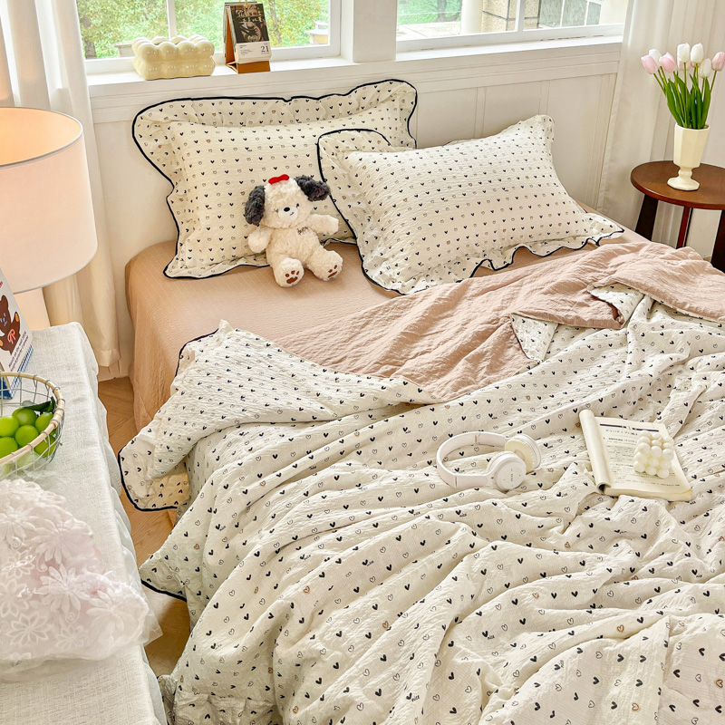 商品名称:利禾家纺 2026新款法式花边泡芙纱夏被四件套 心心相印