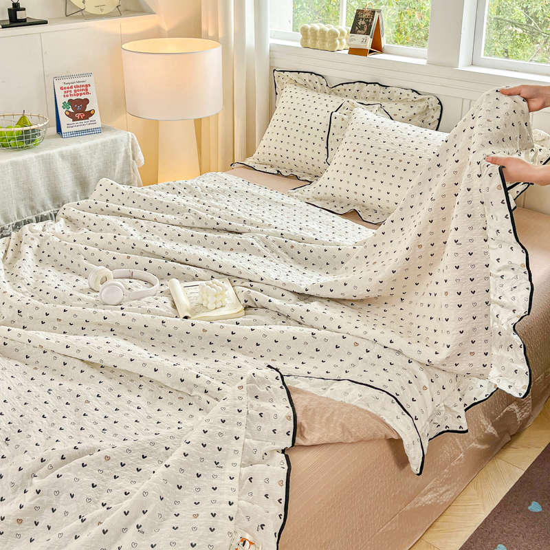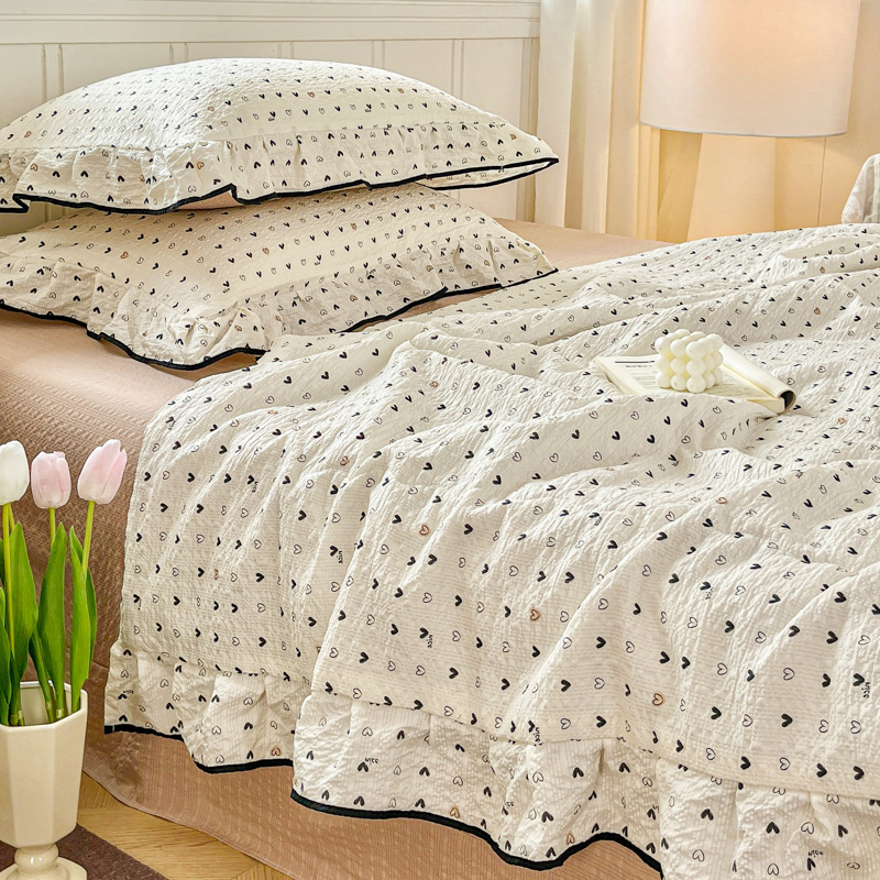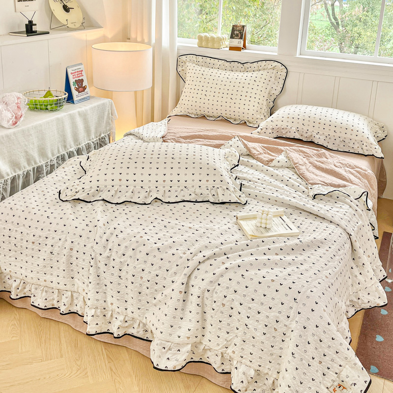 利禾家纺 2026新款法式花边泡芙纱夏被四件套 心心相印