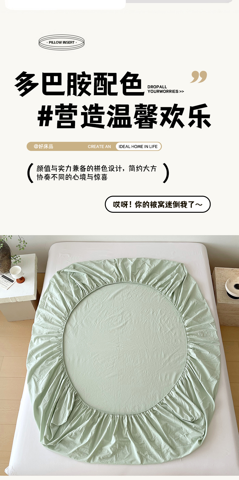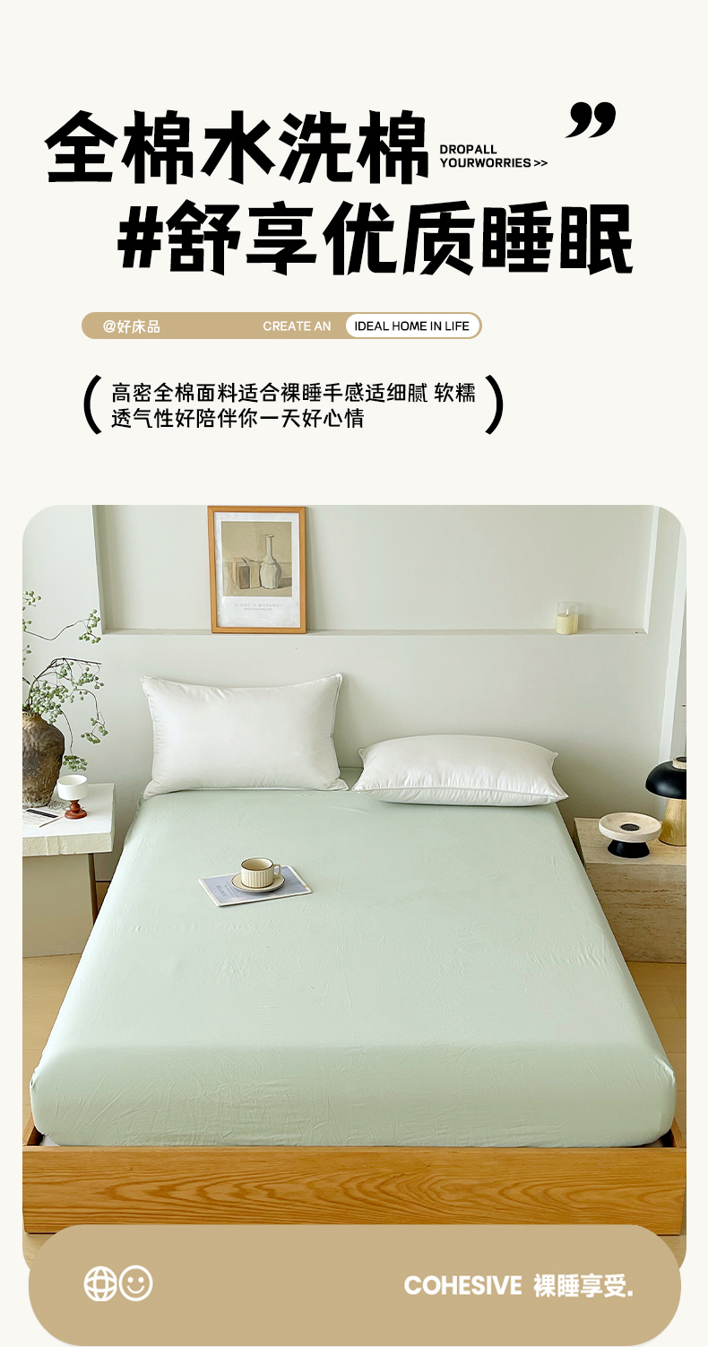商品名称:春皖家纺 2026春夏新款双拼全棉纯棉水洗棉单床笠 床笠单件 素雅果绿