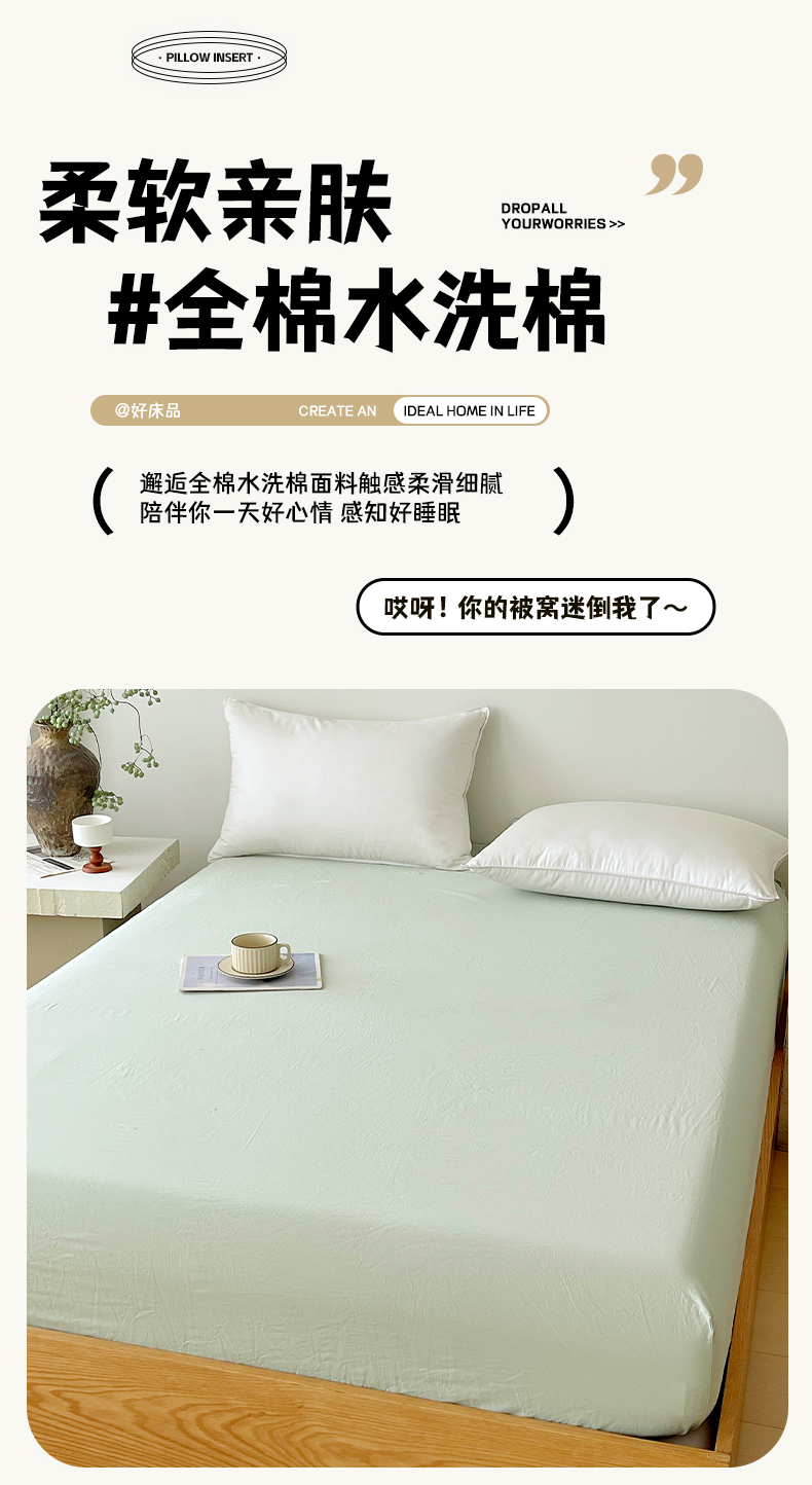 春皖家纺 2026春夏新款双拼全棉纯棉水洗棉单床笠 床笠单件 素雅果绿