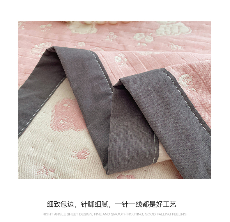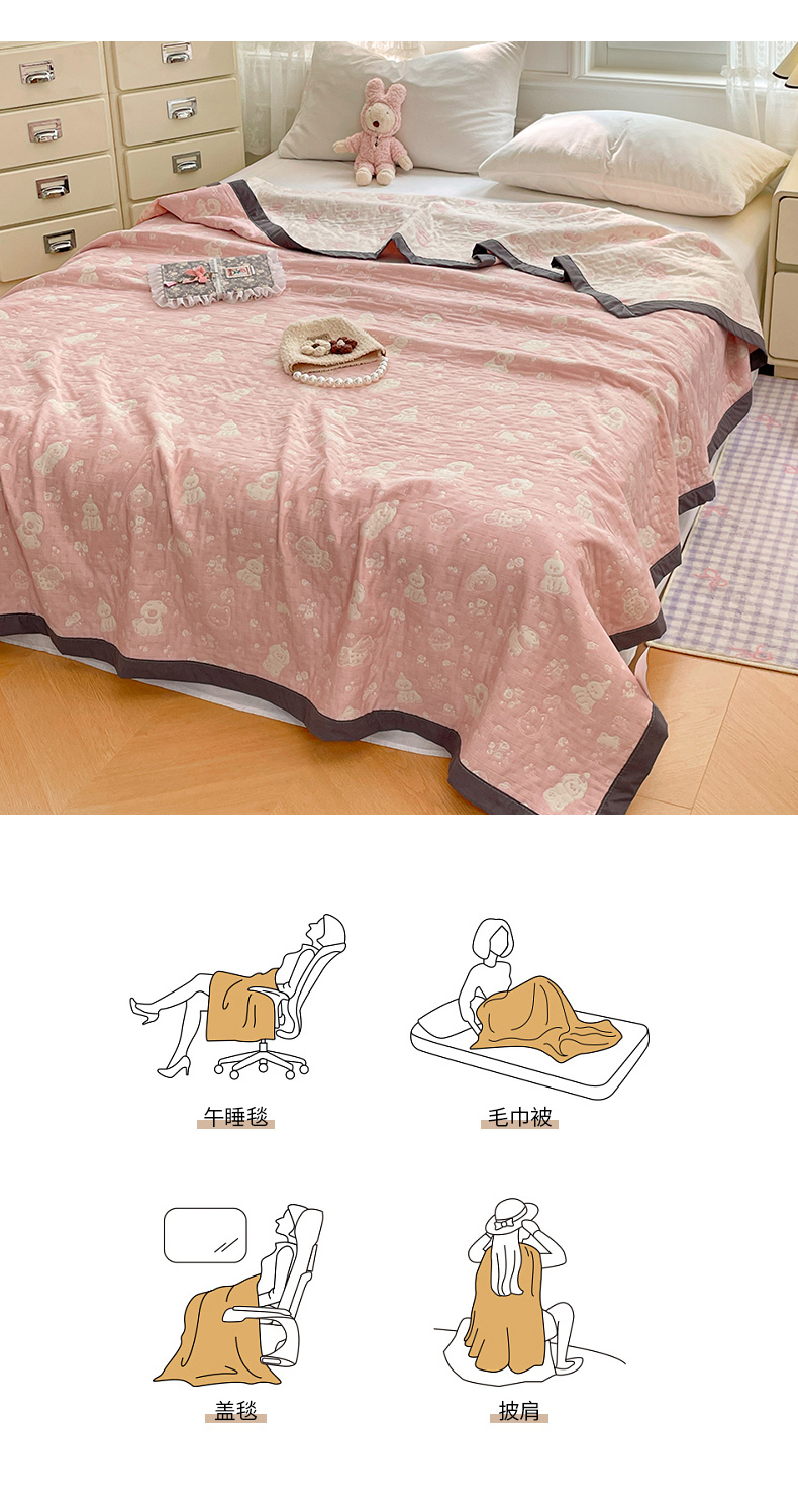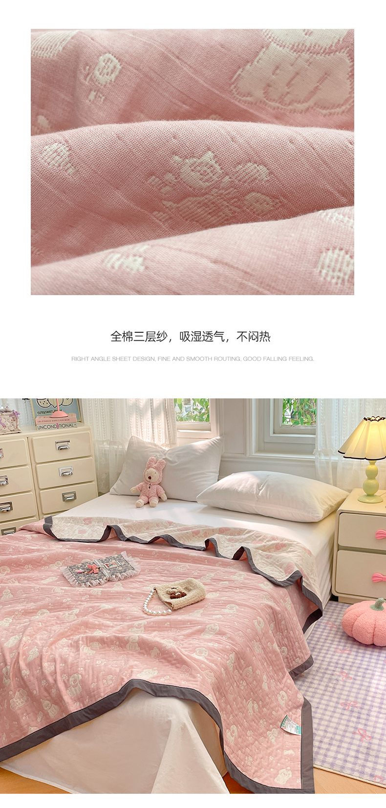 商品名称:云天家纺 2026新款A类全棉三层纱多功能毛巾被(盖毯床单夏被) 萌宠小狗-粉