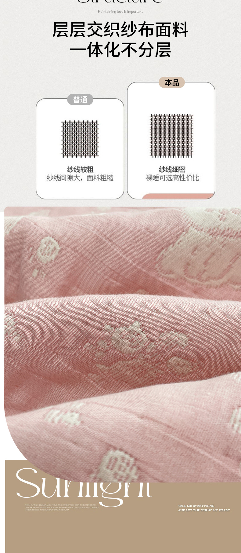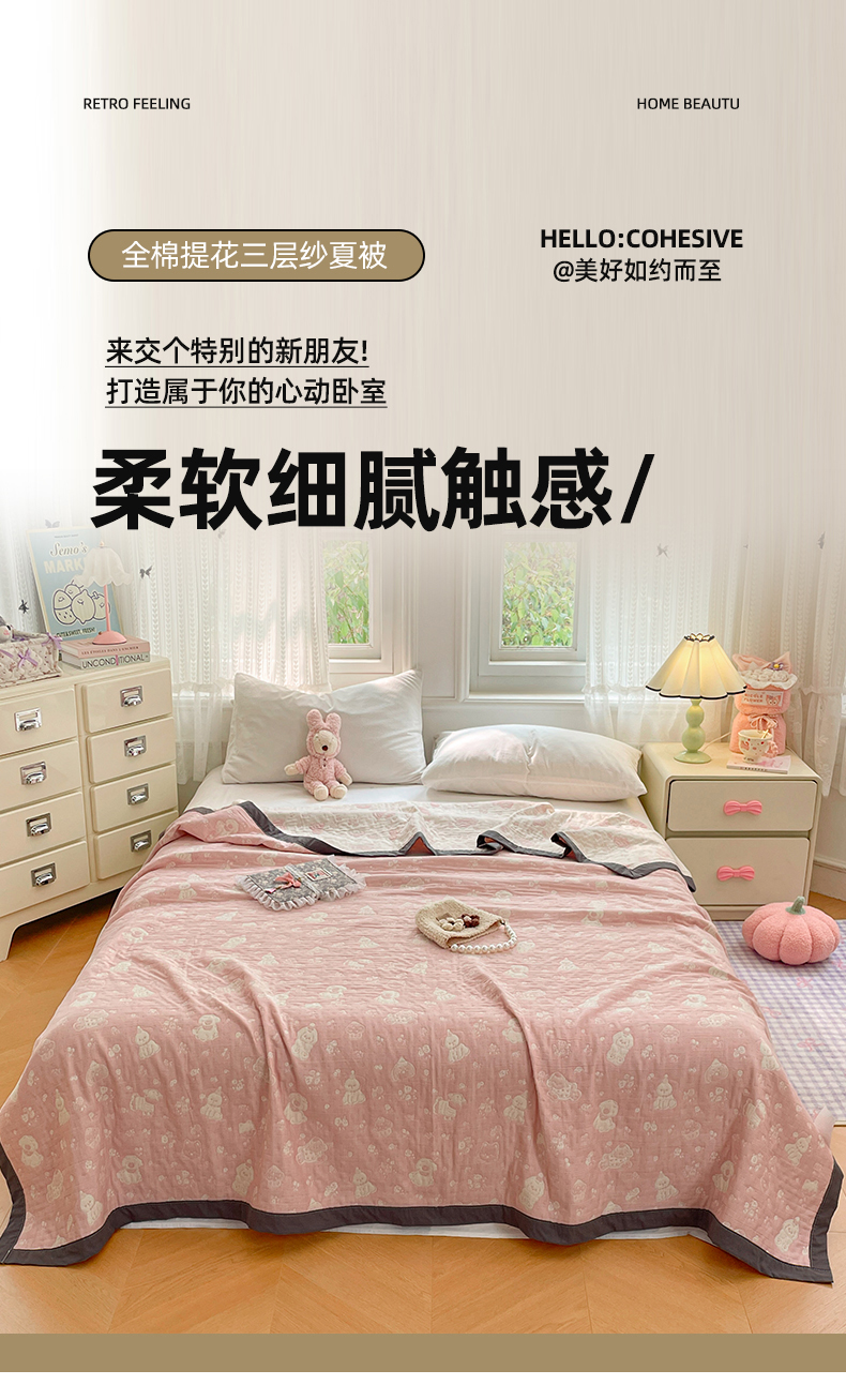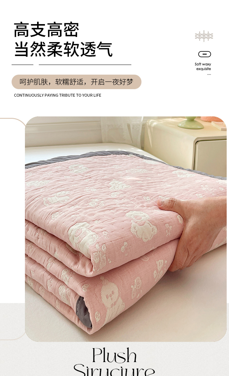 商品名称:云天家纺 2026新款A类全棉三层纱多功能毛巾被(盖毯床单夏被) 萌宠小狗-粉