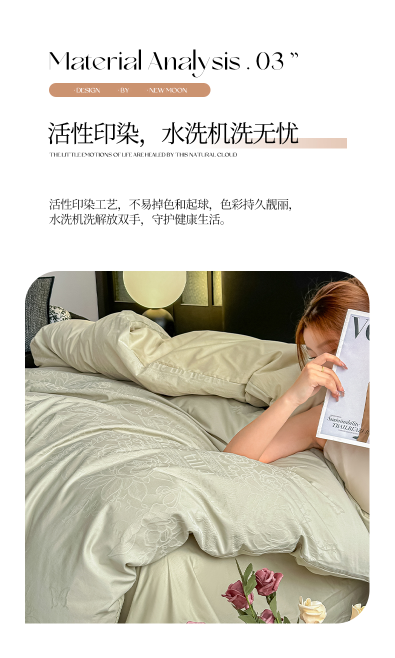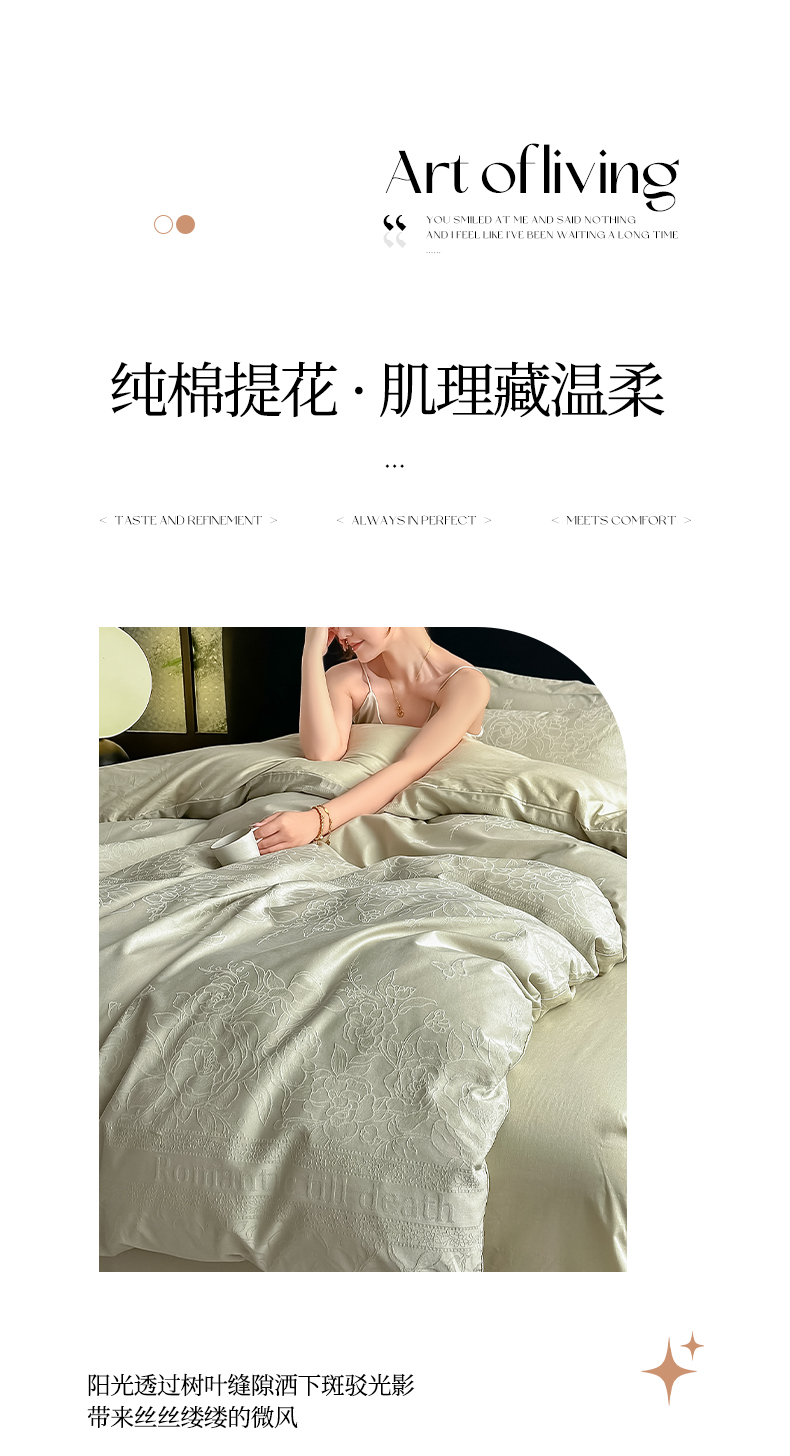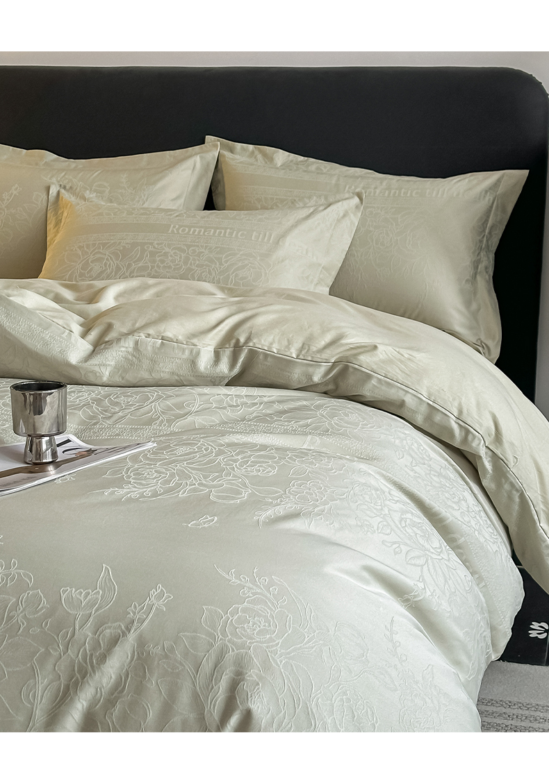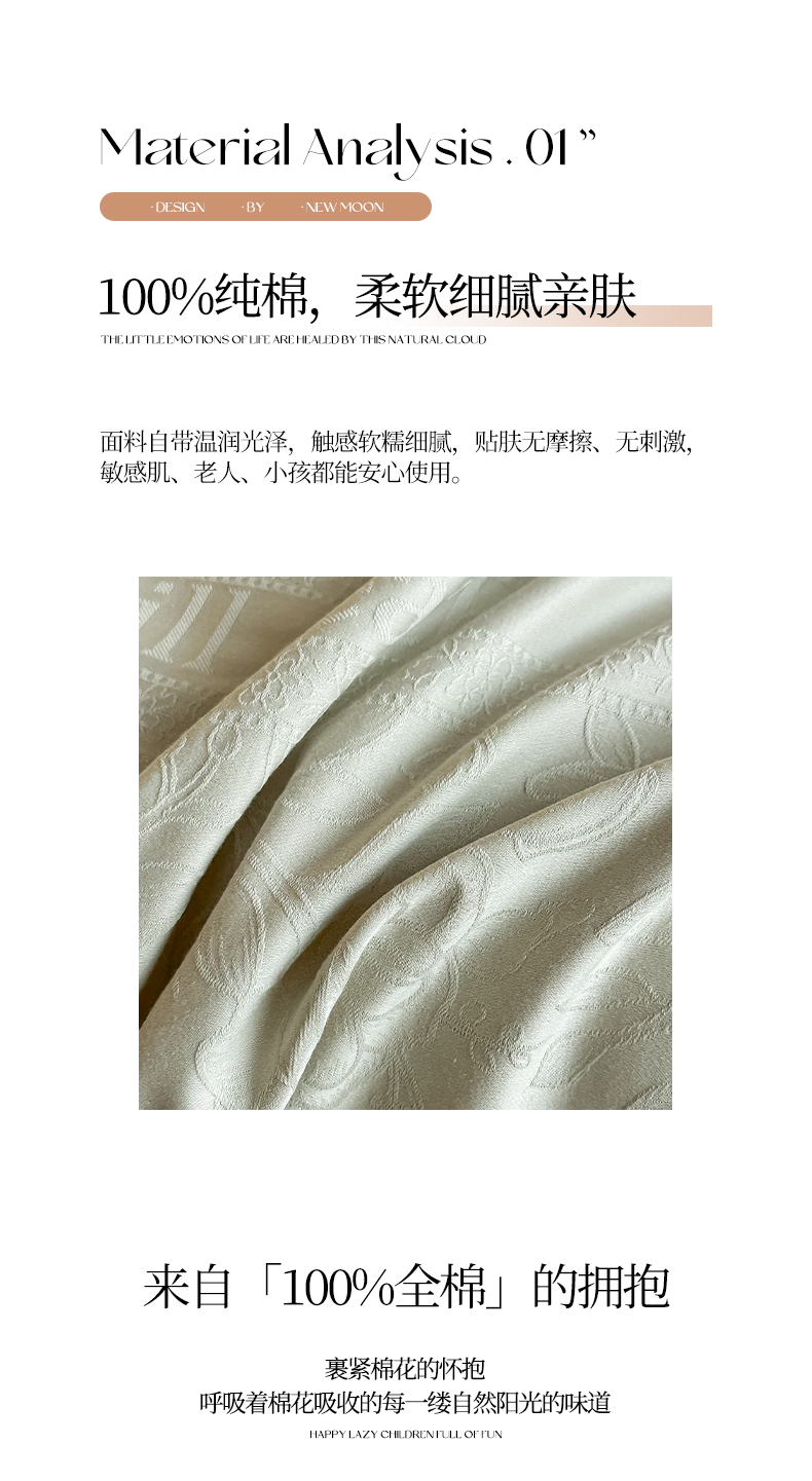 当前位置: 91家纺网 > 商品网购 > 床品套件 > 四件套 > 全棉普通四件套 > 宅家居 2026新款轻奢A类60支立体浮雕长绒棉纯棉提花贡缎全棉四件套光泽绸缎感三件套 恋曲花语-香槟绿