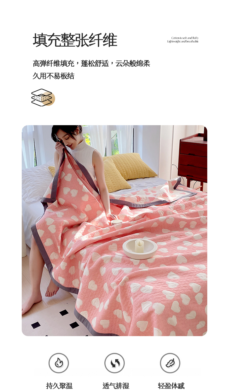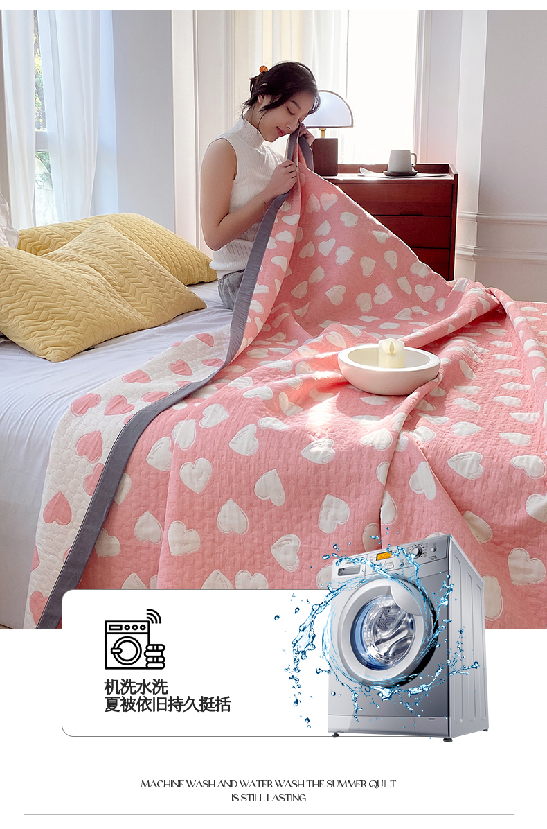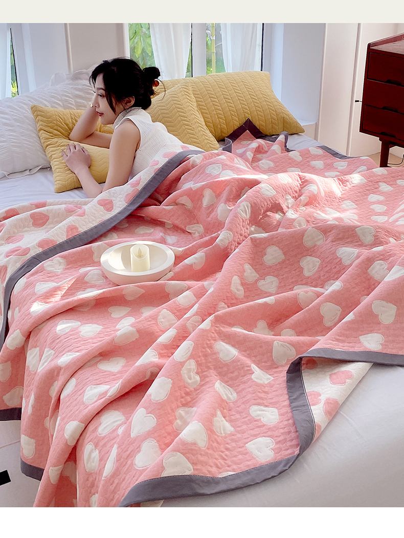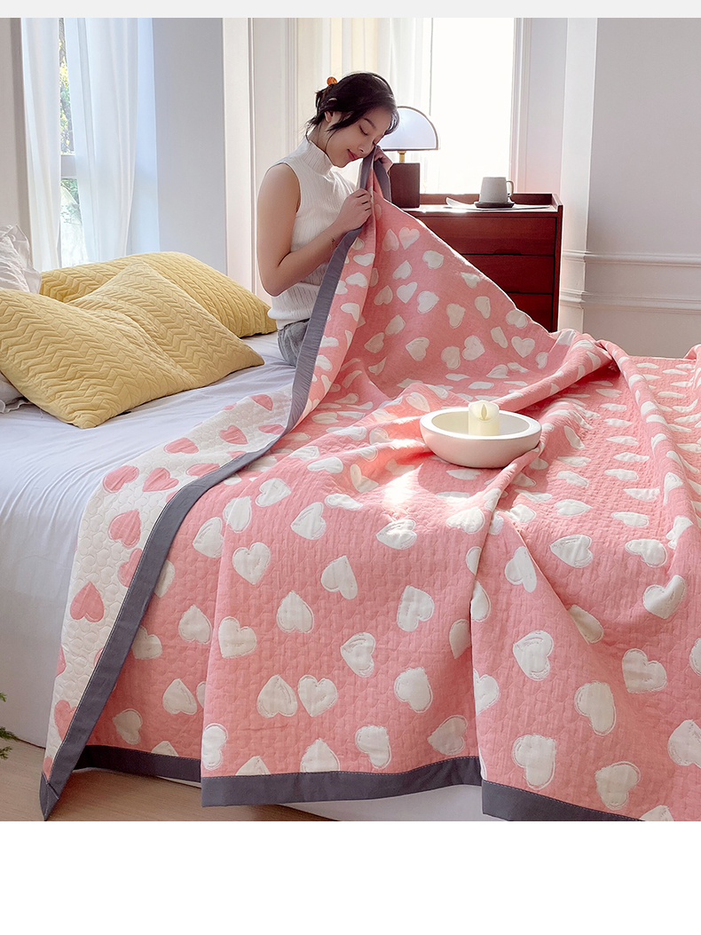 商品名称:兄弟坊 2026新款A类全棉三层纱多功能毛巾被夏被夏凉被(盖毯床单夏被) 甜蜜爱心-粉