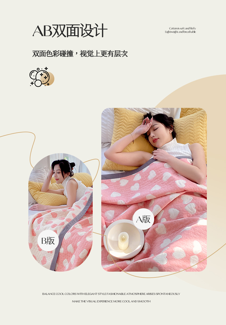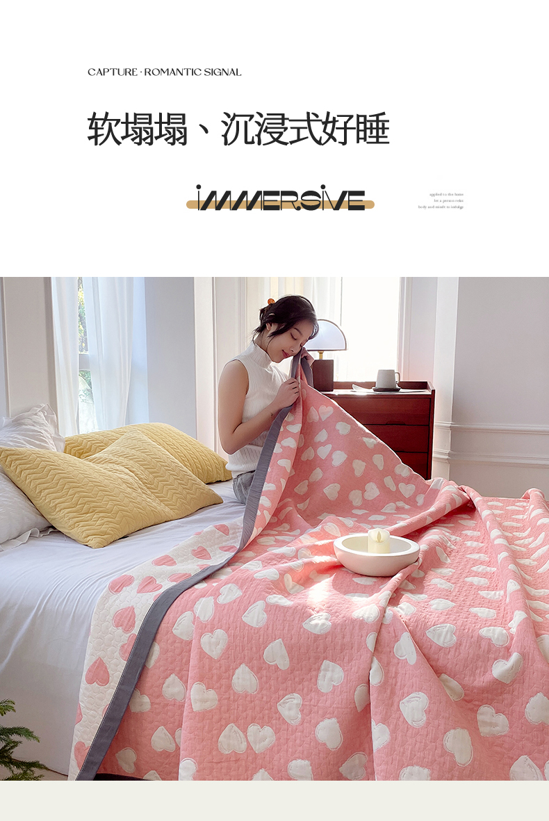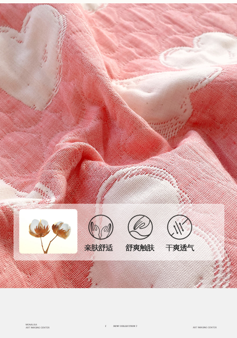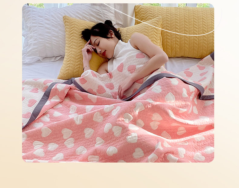 商品名称:兄弟坊 2026新款A类全棉三层纱多功能毛巾被夏被夏凉被(盖毯床单夏被) 甜蜜爱心-粉